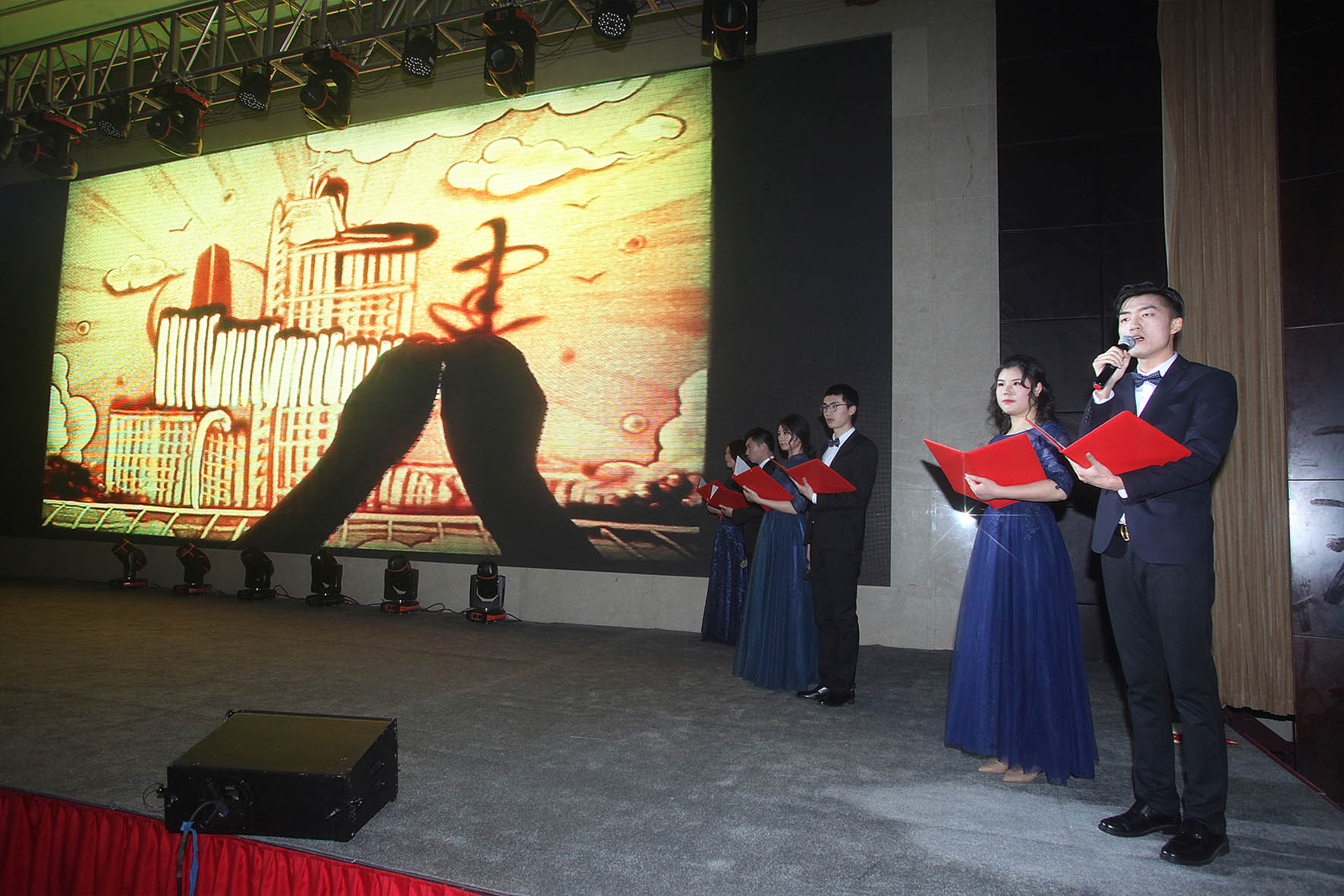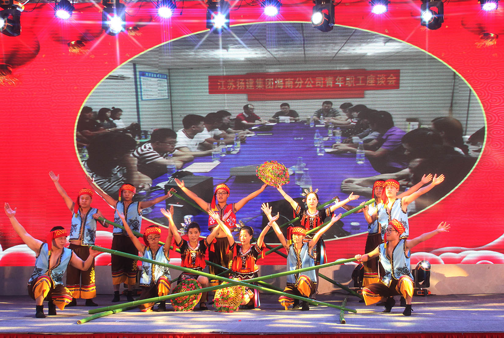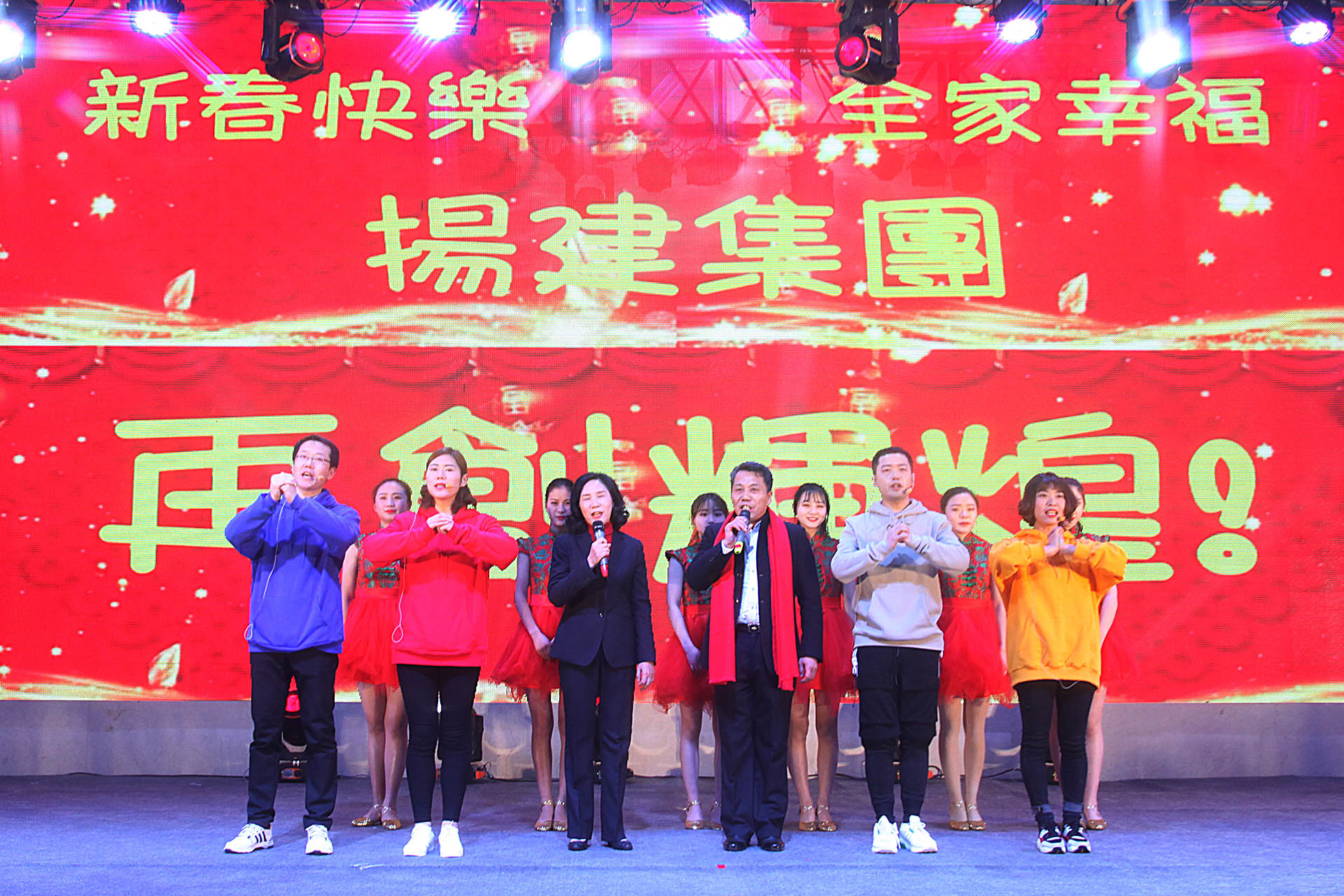 本次團(tuán)拜會(huì)由陳宏、周薇、何萱、馮晨4位同志聯(lián)袂主持,在集團(tuán)總部火熱喜慶的開場(chǎng)舞《恭喜發(fā)財(cái)》中拉開了序幕。市政公司舞蹈《絲路之歌》帶著大家走進(jìn)了兩千多年前古絲路開拓的恢宏歷史,音樂快板《砥礪前行揚(yáng)風(fēng)帆》體現(xiàn)出周材公司服務(wù)集團(tuán)主業(yè)的奉獻(xiàn)精神;二公司合唱《祖國(guó)不會(huì)忘記》讓我們共同見證著集團(tuán)65載的風(fēng)雨和輝煌,樁基公司詩(shī)音畫《不忘初心》,又讓大家感受了揚(yáng)建人、樁基人的堅(jiān)守和執(zhí)著;海南工程處黎族竹竿舞《黎海起航》帶來了不一樣的民族風(fēng)情,建祥公司舞蹈《自豪的建設(shè)者》展現(xiàn)出基層服務(wù)單位的昂揚(yáng)與向上;小品《臺(tái)前幕后》讓我們看到了安裝環(huán)保公司暖心的人文關(guān)懷,集團(tuán)總部溫情演繹的歌舞《父親》感恩了每一名建設(shè)者、每一個(gè)父親對(duì)家庭、對(duì)事業(yè)的責(zé)任、擔(dān)當(dāng)和愛;華達(dá)地產(chǎn)公司奉獻(xiàn)的沙畫朗誦《詩(shī)畫揚(yáng)建》,讓大家在詩(shī)畫之中重溫了集團(tuán)的歲月歷程,設(shè)備公司的三句半《鋼筋鐵骨見高度》用幽默的方式展現(xiàn)出設(shè)備人這個(gè)團(tuán)結(jié)的集體;這邊北方公司的歌舞《拼搏青春》剛剛讓我們感受了鋼鐵般的戰(zhàn)斗意志,那邊舞臺(tái)劇《匠心》就讓我們又領(lǐng)略到華發(fā)公司對(duì)品牌和質(zhì)量的不懈追求;四公司雅致音樂書法表演《琴韻墨香》讓我們品味著中華傳統(tǒng)文化藝術(shù)的魅力,一公司歌舞《國(guó)家》激起了我們的拳拳赤子心,把國(guó)和家的責(zé)任與榮譽(yù)刻入心田!十余項(xiàng)節(jié)目精彩紛呈,各單位精心籌備,發(fā)揮專業(yè)特色,融合民族舞蹈、傳統(tǒng)樂器、沙畫等藝術(shù)元素,獻(xiàn)上一場(chǎng)視聽盛宴,展示出揚(yáng)建大家庭昂揚(yáng)奮進(jìn)、勇于創(chuàng)新、多才多藝的精神面貌。