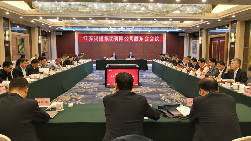 揚(yáng)建網(wǎng)訊 依據(jù)《公司法》及公司《章程》有關(guān)規(guī)定,4月9日下午,江蘇揚(yáng)建集團(tuán)有限公司股東會(huì)2019年度定期會(huì)議在揚(yáng)州西園大酒店二樓和萃廳隆重召開。會(huì)議由曹德榮董事長(zhǎng)主持,全體股東全部出席,全體監(jiān)事列席會(huì)議。