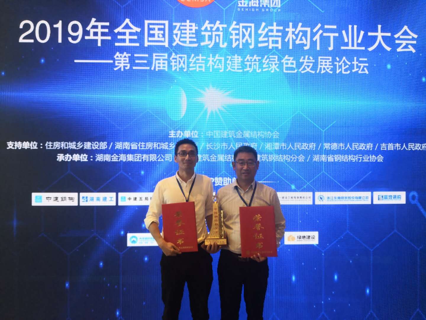 揚(yáng)建網(wǎng)訊 5月29日,2019年全國(guó)建筑鋼結(jié)構(gòu)行業(yè)大會(huì)在長(zhǎng)沙隆重舉行,會(huì)議對(duì)2017~2018年度鋼結(jié)構(gòu)行業(yè)的先進(jìn)進(jìn)行表彰,我集團(tuán)鋼結(jié)構(gòu)分公司所承建的揚(yáng)州市游泳健身中心鋼結(jié)構(gòu)工程、南部體育公園鋼結(jié)構(gòu)工程分別獲得了第十三屆第一批、第二批中國(guó)鋼結(jié)構(gòu)金獎(jiǎng)。