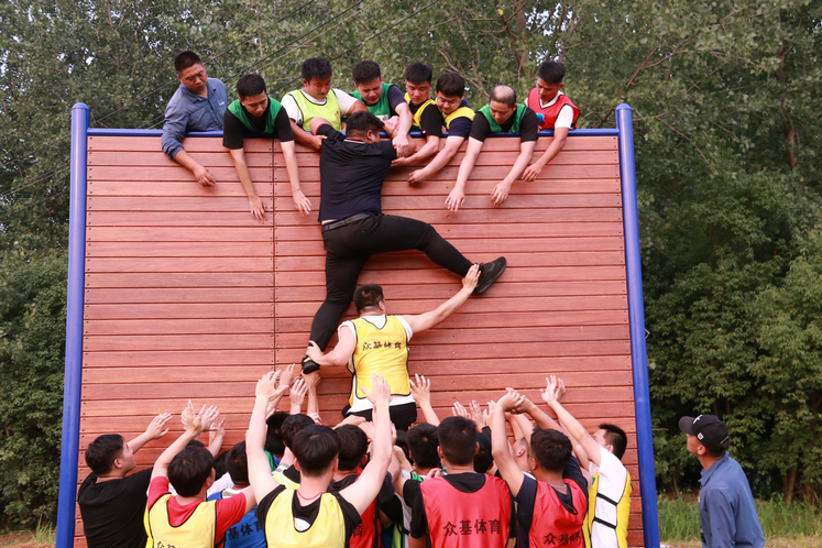 本次素質(zhì)拓展訓練將成員分為六組進行競技PK。首先,團隊通過“大破冰”的熱身活動,加深了學員間的相互了解。接下來,學員以小組為競賽單位,逐一完成“穿越電網(wǎng)”“挑戰(zhàn)NO.1”“急速60秒”等挑戰(zhàn)任務。最后,所有學員團結(jié)一心,排除萬難,徒手翻越過4米高的“畢業(yè)墻”,讓大家領悟到“汗水收獲喜悅,堅持成就夢想”的真諦。