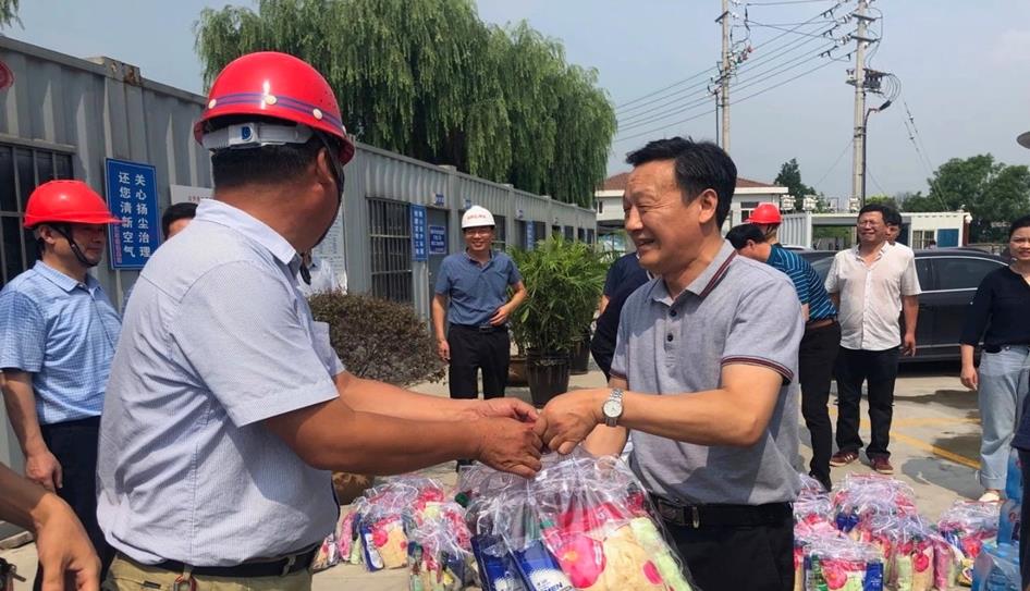 揚建網(wǎng)訊 7月24日上午,揚州市總工會副主席朱明、中共揚州市紀律檢查委員會常委、秘書長陳鈞、揚州市城建國有資產(chǎn)控股(集團)有限責(zé)任公司總經(jīng)理葉善祥、揚州市市政建設(shè)處主任呂秀龍等領(lǐng)導(dǎo)一行,慰問了我集團承建的揚州監(jiān)察廉政教育基地擴建工程醒園二期項目部全體員工,給他們送去防暑降溫慰問品和職工勞動保護手冊,讓堅守在高溫生產(chǎn)一線的職工們實實在在感受到工會組織的關(guān)愛。
