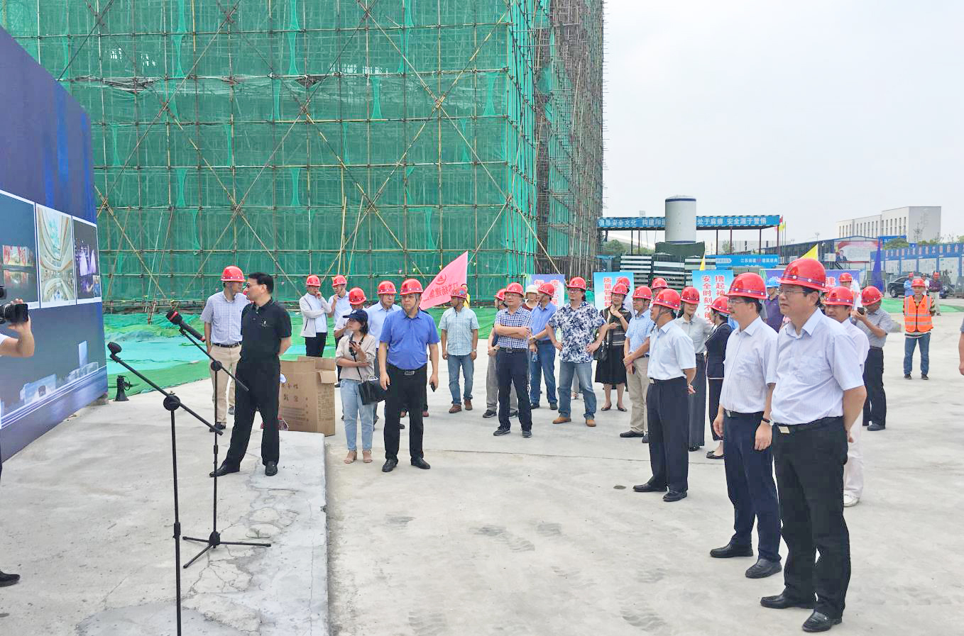 視察期間,市政協(xié)、人大領(lǐng)導(dǎo)一行實(shí)地察看了項(xiàng)目進(jìn)展,聽取了相關(guān)項(xiàng)目的工程主體、鋼結(jié)構(gòu)、安裝及后續(xù)裝修等專業(yè)施工情況的匯報(bào),對(duì)總包單位揚(yáng)建集團(tuán)高質(zhì)量、快速度的建設(shè)進(jìn)展表示滿意,并希望揚(yáng)建集團(tuán)嚴(yán)格按照節(jié)點(diǎn)要求,高標(biāo)準(zhǔn)、高質(zhì)量完成施工任務(wù)。