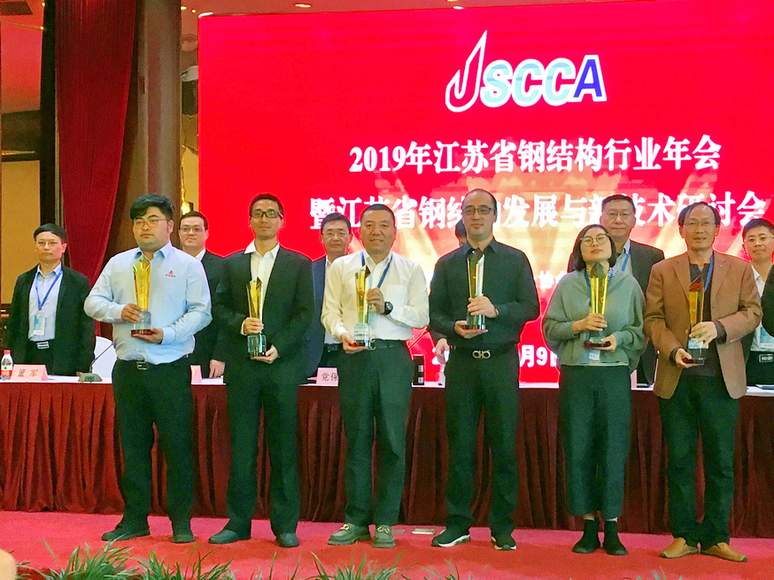 揚(yáng)建網(wǎng)訊 11月9日,2019年江蘇省鋼結(jié)構(gòu)行業(yè)年會暨江蘇省鋼結(jié)構(gòu)發(fā)展與新技術(shù)研討會在江蘇靖江召開,會議表彰了上年度鋼結(jié)構(gòu)行業(yè)的先進(jìn),集團(tuán)鋼結(jié)構(gòu)分公司承建的南部體育公園鋼結(jié)構(gòu)工程、揚(yáng)州市游泳健身中心鋼結(jié)構(gòu)工程、江蘇旅游職業(yè)學(xué)院(一期)鋼結(jié)構(gòu)工程、揚(yáng)州市經(jīng)濟(jì)技術(shù)開發(fā)區(qū)振興花園學(xué)校鋼結(jié)構(gòu)工程獲得2018年度江蘇省優(yōu)質(zhì)工程獎?chuàng)P子杯。與此同時,鋼結(jié)構(gòu)分公司深化設(shè)計的新大劇院建設(shè)工程A區(qū)鋼結(jié)構(gòu)BIM技術(shù)獲得第一屆江蘇省鋼結(jié)構(gòu)工程BIM技術(shù)應(yīng)用大賽一等獎,南部體育公園鋼結(jié)構(gòu)BIM技術(shù)、揚(yáng)州軟件園產(chǎn)業(yè)孵化基地箱式公寓BIM技術(shù)獲得二等獎。