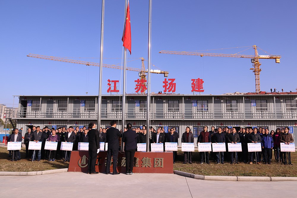 揚(yáng)建網(wǎng)訊 11月19日早晨,集團(tuán)黨委組織在揚(yáng)各基層黨組織共20個(gè)黨支部逾260名黨員及積極分子,在集團(tuán)華師大項(xiàng)目部舉行“不忘初心、牢記使命”主題教育升旗儀式。