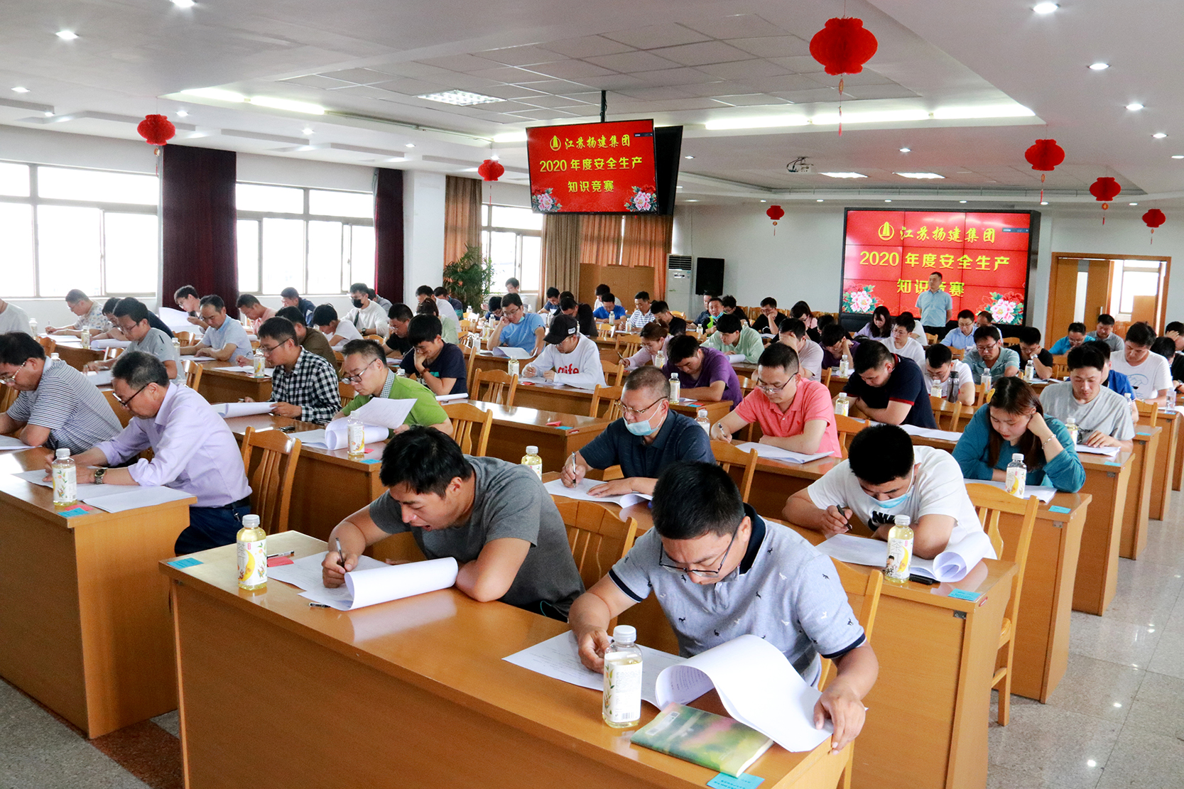 揚(yáng)建網(wǎng)訊 為切實(shí)開展全國(guó)第19個(gè)、我省第27個(gè)“安全生產(chǎn)月”活動(dòng),充分體現(xiàn) “保障安全,重在落實(shí)”的集團(tuán)安全理念,集團(tuán)工會(huì)與安全監(jiān)督部于6月19日下午在集團(tuán)鹽阜辦公區(qū)七樓會(huì)議室聯(lián)合舉辦以“消除事故隱患,筑牢安全防線”為主題的安全生產(chǎn)知識(shí)競(jìng)賽。參賽單位有項(xiàng)目管理一、二、三、四公司,泰州分公司、海南分公司、北方公司、華發(fā)、樁基、機(jī)電、市政、建祥、設(shè)備、周材、鋼結(jié)構(gòu)、華中以及新?lián)P建公司共17支代表隊(duì)85名職工。
