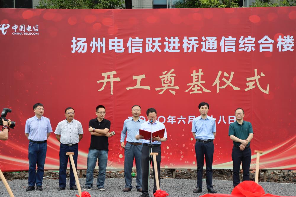 揚(yáng)建網(wǎng)訊 6月28號(hào)下午,由集團(tuán)總包承建的揚(yáng)州電信躍進(jìn)橋通信綜合樓開(kāi)工奠基儀式在運(yùn)河西路揚(yáng)州躍進(jìn)橋通信大院內(nèi)順利舉行。揚(yáng)州電信黨委書(shū)記兼總經(jīng)理郭劍、我集團(tuán)總經(jīng)理鄒厚存、副總陳寶中及各參建方代表等出席活動(dòng)。