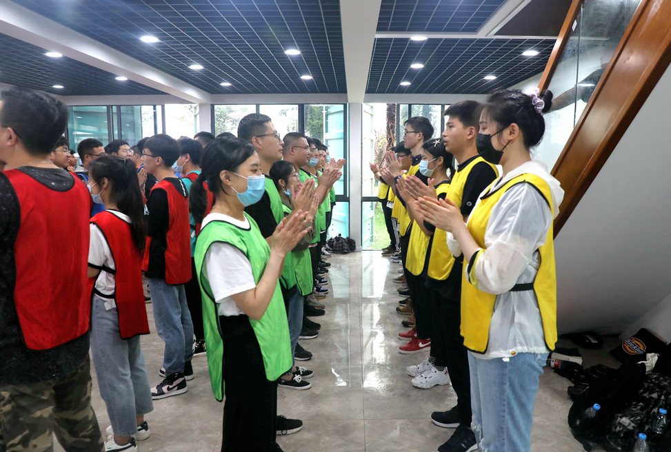由于天氣原因,本次活動不得不改在室內(nèi)進行。參訓學員以小組為競賽單位,齊心協(xié)力地完成“群龍取水”“極速60秒”“達芬奇密碼”“集體報數(shù)”等團隊挑戰(zhàn)任務,達到了“放松心情、放下包袱、放開手腳、放大魅力”的目的。