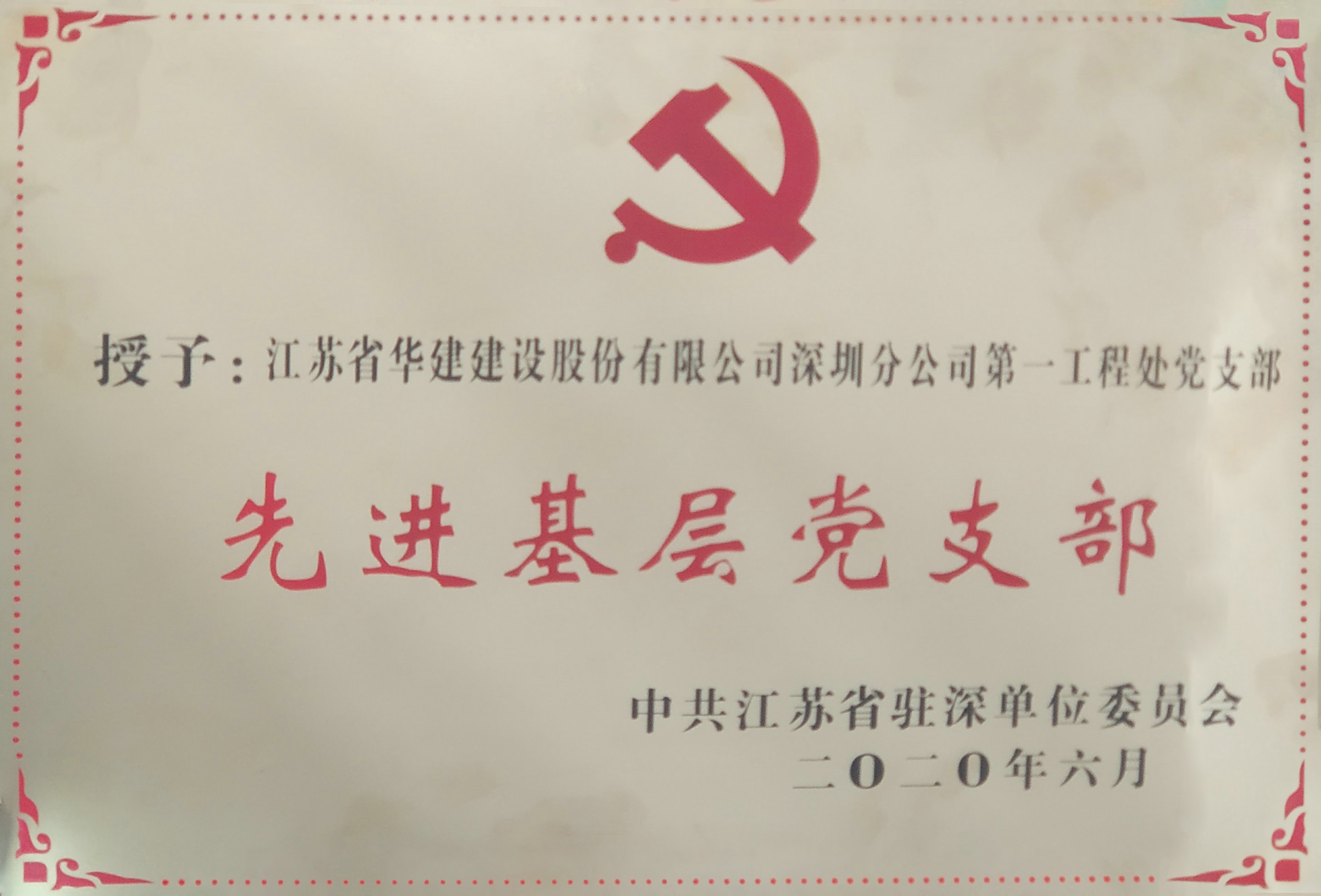 深圳工程處榮獲江蘇省駐深單位先進基層黨支部等榮譽