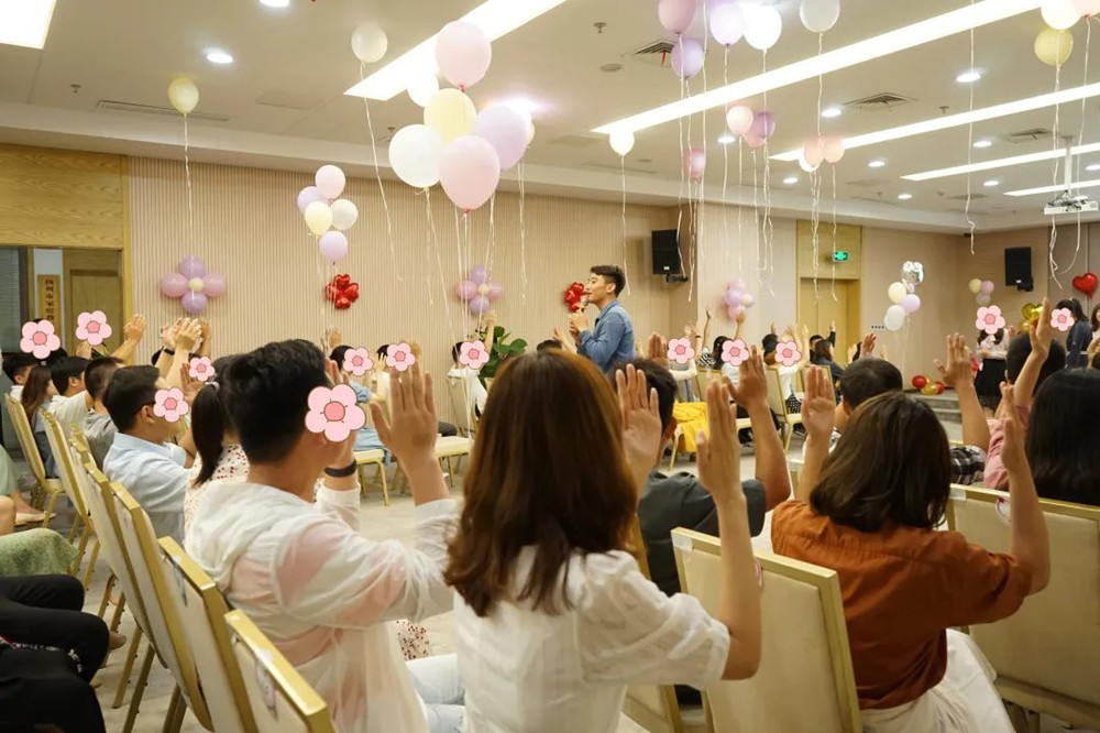 活動現(xiàn)場氣氛熱烈,歡聲笑語不斷。第一個環(huán)節(jié)“相遇”拉開序幕,伴隨著浪漫的音樂,男女嘉賓按隨機(jī)分配的號碼牌在茫茫人海中找到了同桌的你;第二個環(huán)節(jié)“攜手”埋下伏筆,一系列拓展小游戲,放松了心情,打開了心扉,拉近了距離,增進(jìn)了了解,為后續(xù)嘉賓們更深入的交流打下了良好的基礎(chǔ);第三個環(huán)節(jié)“牽手”一波N折,富有創(chuàng)意又趣味十足的自我介紹,將現(xiàn)場的氣氛推向了另一個高潮;第四個環(huán)節(jié)“美滿”落下帷幕,游戲過后,進(jìn)入到了自由交流環(huán)節(jié),現(xiàn)場既有中心紅娘志愿者為嘉賓們提供婚戀咨詢,又有中心工作人員以客服角色開展一對一服務(wù)。幾輪環(huán)節(jié)過后,現(xiàn)場不少男女嘉賓有了心儀的對象并且交換了聯(lián)系方式。