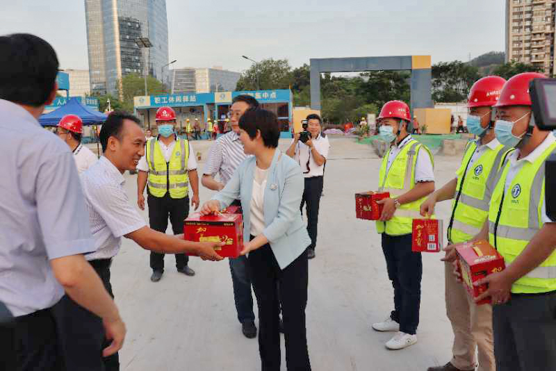揚(yáng)建網(wǎng)訊 8月23日下午,揚(yáng)州市市長(zhǎng)張寶娟、副市長(zhǎng)何金發(fā)、方桂林、市政府秘書長(zhǎng)尤在晶、副秘書長(zhǎng)林寶榮、張小輝等一行冒著高溫酷暑親臨我南方科技大學(xué)(二期)Ⅰ標(biāo)項(xiàng)目,為項(xiàng)目部送去了夏季清涼,并親切慰問了項(xiàng)目部全體員工,極大激發(fā)了員工的幸福感、榮譽(yù)感、歸屬感!