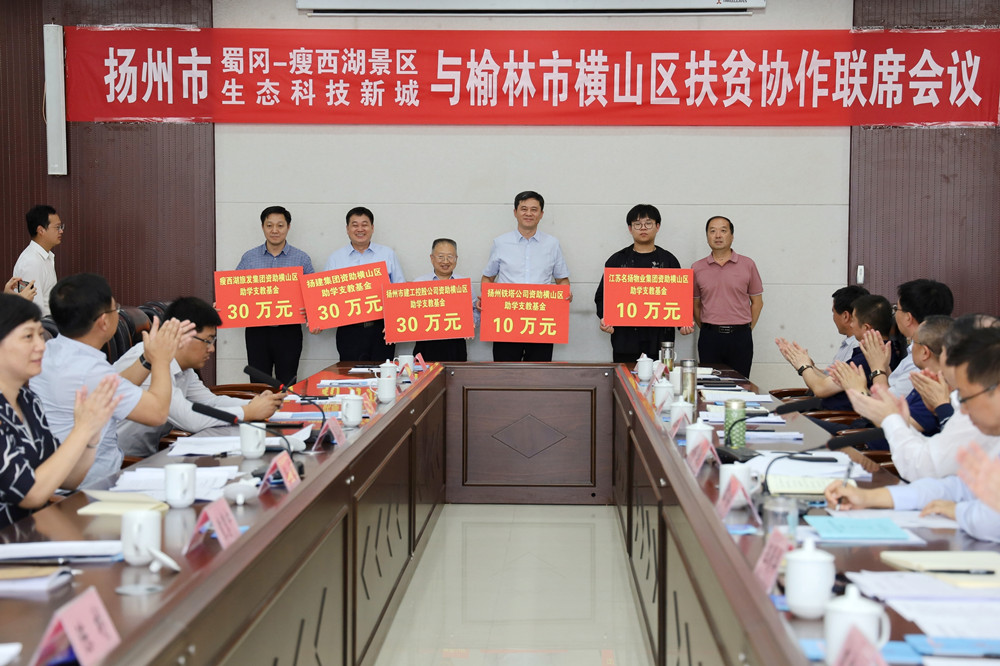 揚(yáng)建網(wǎng)訊 8月28日,集團(tuán)隨景區(qū)黨政代表團(tuán)赴陜西省榆林市橫山區(qū)出席揚(yáng)榆扶貧協(xié)作聯(lián)席會(huì)議并開展支教助學(xué)捐助活動(dòng)。