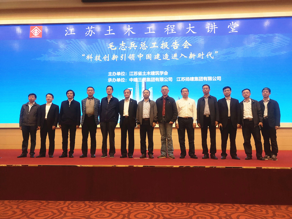 揚建網(wǎng)訊 10月16日下午,由江蘇省土木建筑學會主辦,中建三局和我集團共同承辦的2020年江蘇土木工程大講堂“科技創(chuàng)新引領(lǐng)中國建造進入新時代”學術(shù)報告會在南京舉行。會議由江蘇省土木建筑學會副理事長兼秘書長王華主持,中國建筑業(yè)協(xié)會專家委員會副主任、原南京市建設委員會副主任趙正嘉、我集團公司總經(jīng)理鄒厚存、技術(shù)人員及南京分公司共計40余人參會,省內(nèi)高校、科研院所、設計院、施工企業(yè)、監(jiān)理單位等350多人聆聽了此次報告。