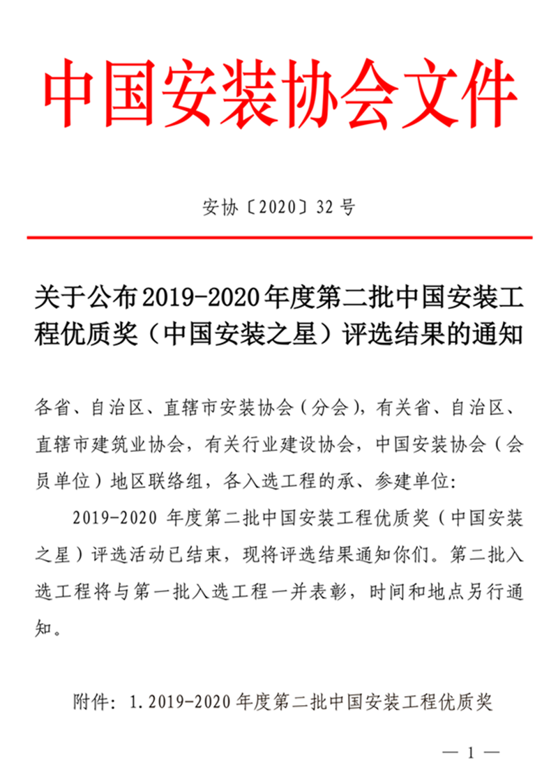 集團(tuán)再添四項(xiàng)國家級安裝質(zhì)量獎(jiǎng)