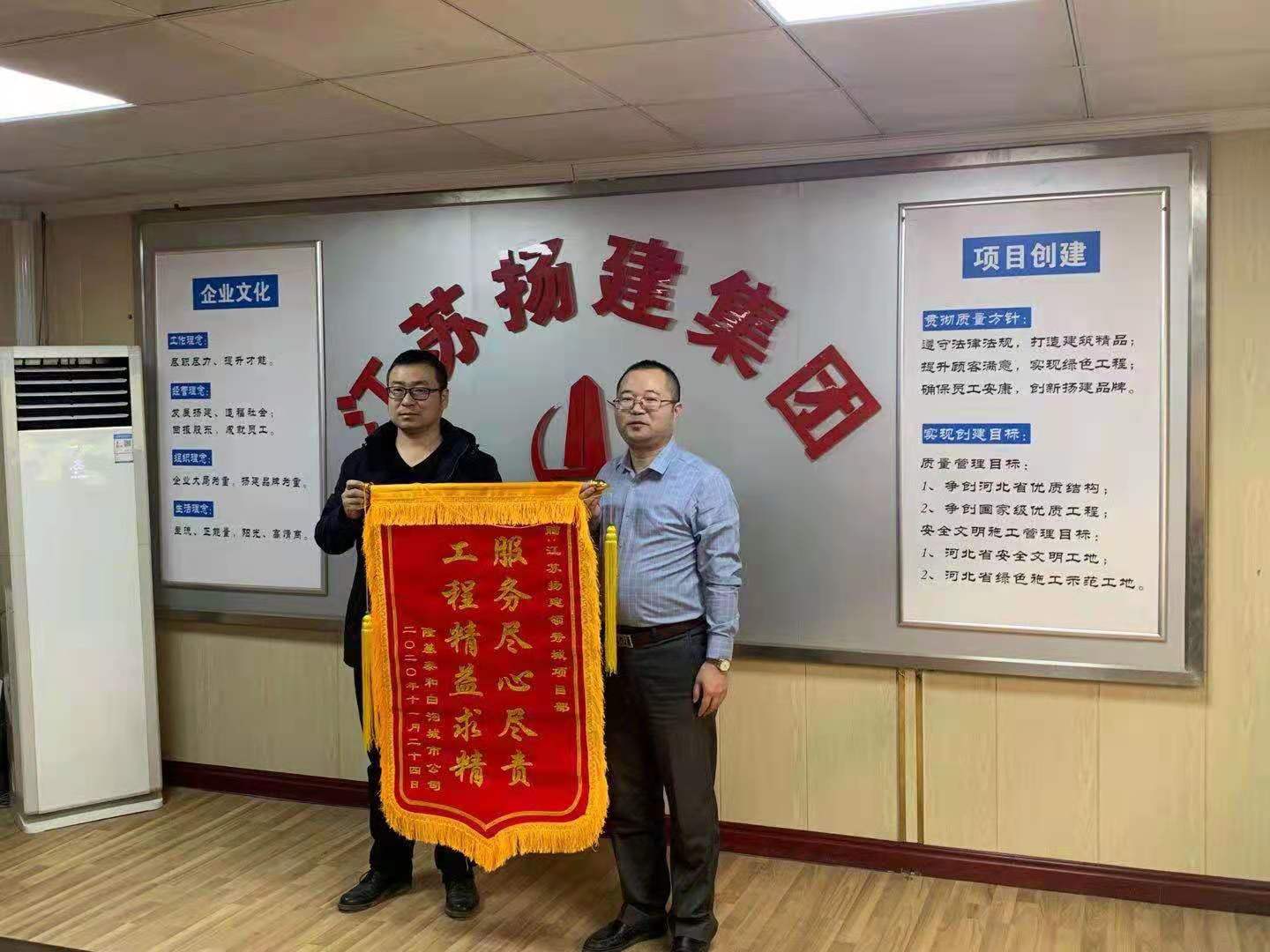 隆基泰和集團(tuán)向江蘇揚(yáng)建集團(tuán)北方公司贈(zèng)送錦旗