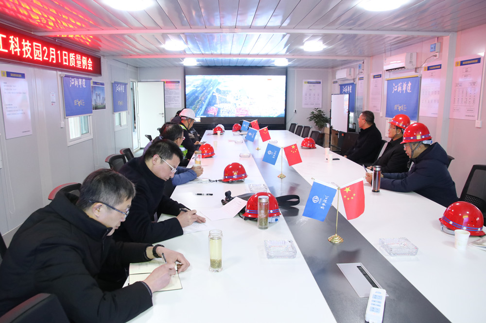 在建工科技園項目檢查中,相關(guān)部室負(fù)責(zé)人就春節(jié)前后安全生產(chǎn)、工期節(jié)點(diǎn)保障、食堂食品衛(wèi)生、節(jié)日保衛(wèi)值班、節(jié)后復(fù)工準(zhǔn)備、防疫物質(zhì)儲備等方面的工作要求,向項目部主要負(fù)責(zé)同志一一作了交底;丁國偉等項目負(fù)責(zé)同志就當(dāng)前生產(chǎn)情況以及節(jié)日前后相關(guān)工作安排及準(zhǔn)備一一作了匯報。