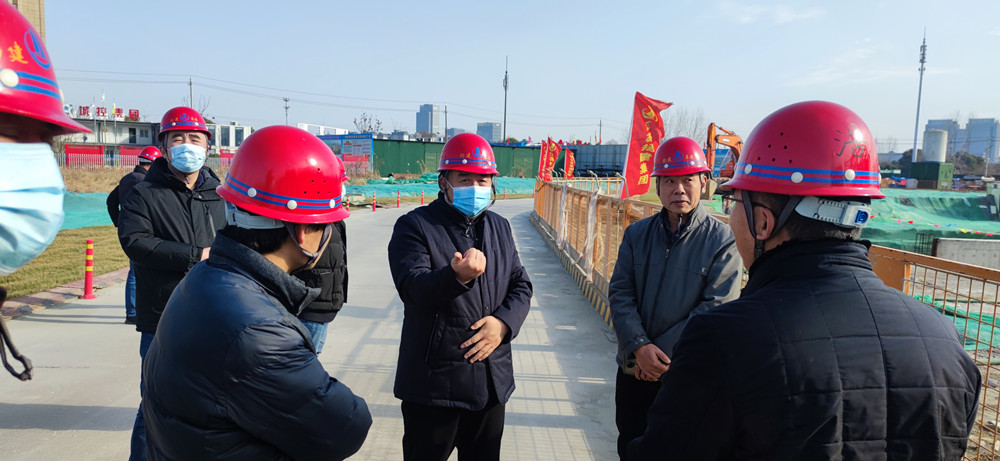 揚(yáng)建網(wǎng)訊 2月4日下午,市國(guó)資委副調(diào)研員周忠一行蒞臨頤和二標(biāo)段項(xiàng)目,專(zhuān)題調(diào)研節(jié)前安全生產(chǎn)工作。集團(tuán)公司副總經(jīng)理丁傳武、安全監(jiān)督部部長(zhǎng)朱曉軍以及二公司相關(guān)負(fù)責(zé)人陪同參加。