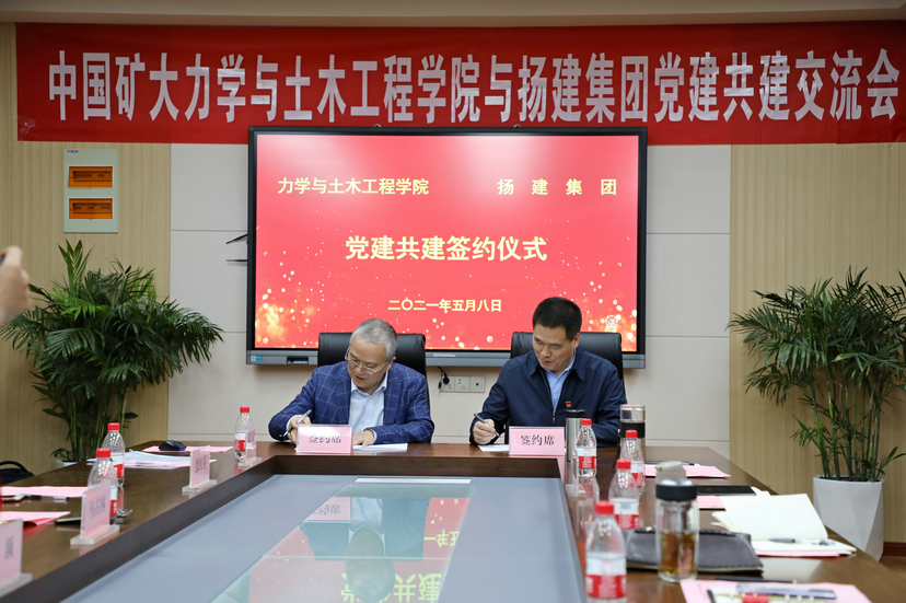 揚(yáng)建網(wǎng)訊 5月8日下午,以“黨建引領(lǐng),共創(chuàng)共建”為主題,集團(tuán)與中國礦業(yè)大學(xué)力學(xué)與土木工程學(xué)院在礦大文昌校區(qū)國際學(xué)院會(huì)議室開展黨建共建交流。礦大力學(xué)與土木工程學(xué)院黨委書記高頂、院長馬占國、黨委副書記李智、工會(huì)主席張紅英、國家重點(diǎn)實(shí)驗(yàn)室副主任李亭等領(lǐng)導(dǎo)及集團(tuán)黨委副書記張振新、集團(tuán)公司副總經(jīng)理陳寶中、總經(jīng)理助理孔凡裕等領(lǐng)導(dǎo)共同參與交流。