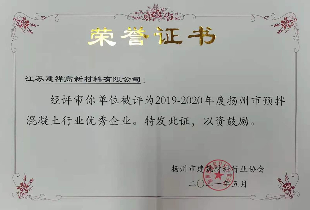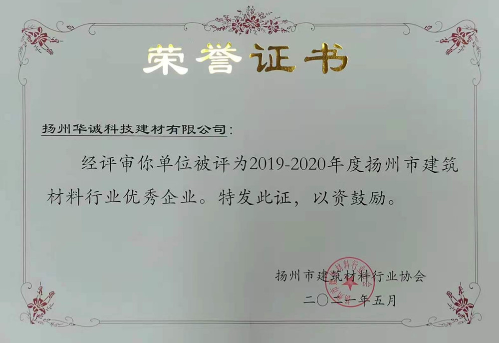 建祥華誠蟬聯(lián)揚州市建材行業(yè)優(yōu)秀企業(yè)