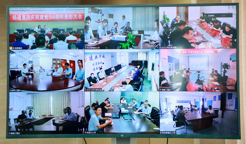 揚建網(wǎng)訊 6月26日下午三點,集團黨委在文昌辦公區(qū)14樓會議室召開了慶祝建黨100周年表彰大會。會議由集團黨委副書記張振新同志主持,集團在揚領(lǐng)導、總部中層管理人員、在揚基層單位黨政負責人、黨員代表參加。上海、新疆、北方、深圳、珠海、海南等外埠單位同步參加了視頻會議。