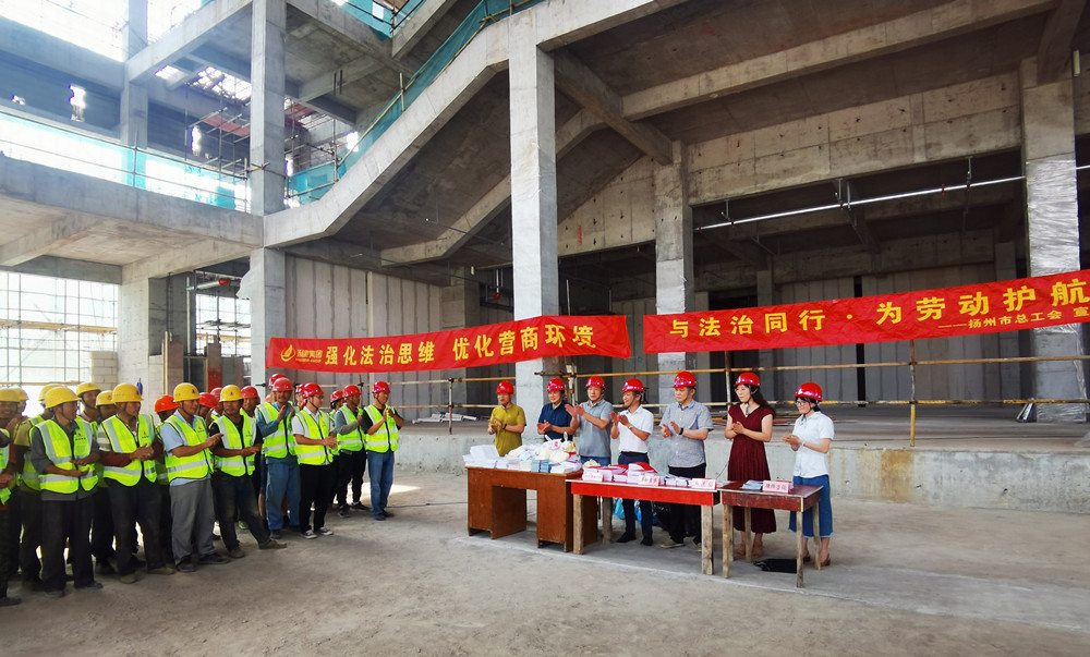 揚建網訊 為發(fā)揮黨員先鋒模范作用和黨員領導干部表率作用,6月24日下午,市建管處聯(lián)合市總工會、市司法局、市勞動監(jiān)察在我集團揚州高等職業(yè)技術學校項目現(xiàn)場開展“我為群眾辦實事”黨員志愿服務活動。市建管處吳建華主席及其他領導、市總工會、市司法局、市勞動監(jiān)察相關領導、我集團公司副總經理劉海斌、企業(yè)管理部部長何平等40余人參與活動。