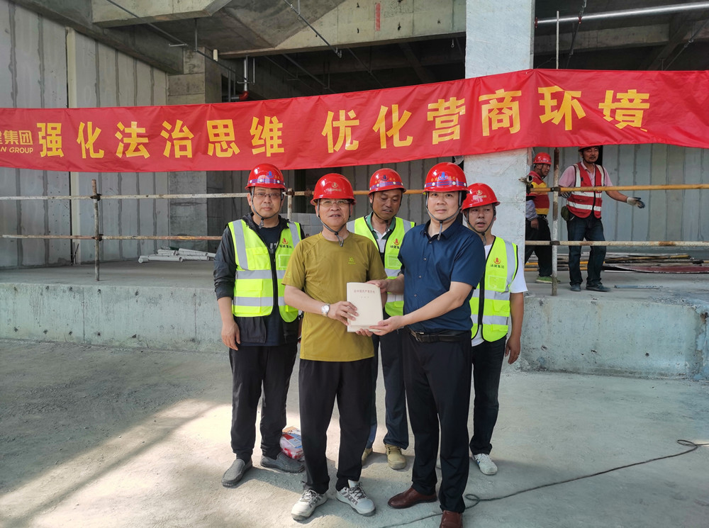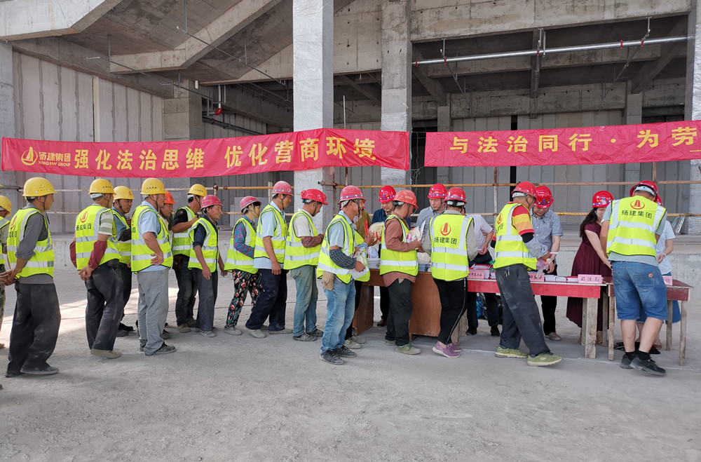 活動開始,市司法局領導詢問工人是否有法律方面的問題需要咨詢;并介紹了農民工兄弟維權合法渠道。接著,何平部長代表我集團對政府相關部門給予集團和農民工的關心關愛表示感謝,對辛勤奮斗在施工一線的工人兄弟表達了慰問?;顒又?,市相關部門領導給現(xiàn)場工人發(fā)放了《勞動法》《保障農民工工資支付條例》《工傷保險條例》《中國人民共和國民法典》等法律法規(guī)宣傳冊,并送去夏季防護用品,切實為工人謀實惠、辦實事,受到現(xiàn)場工人一致好評。