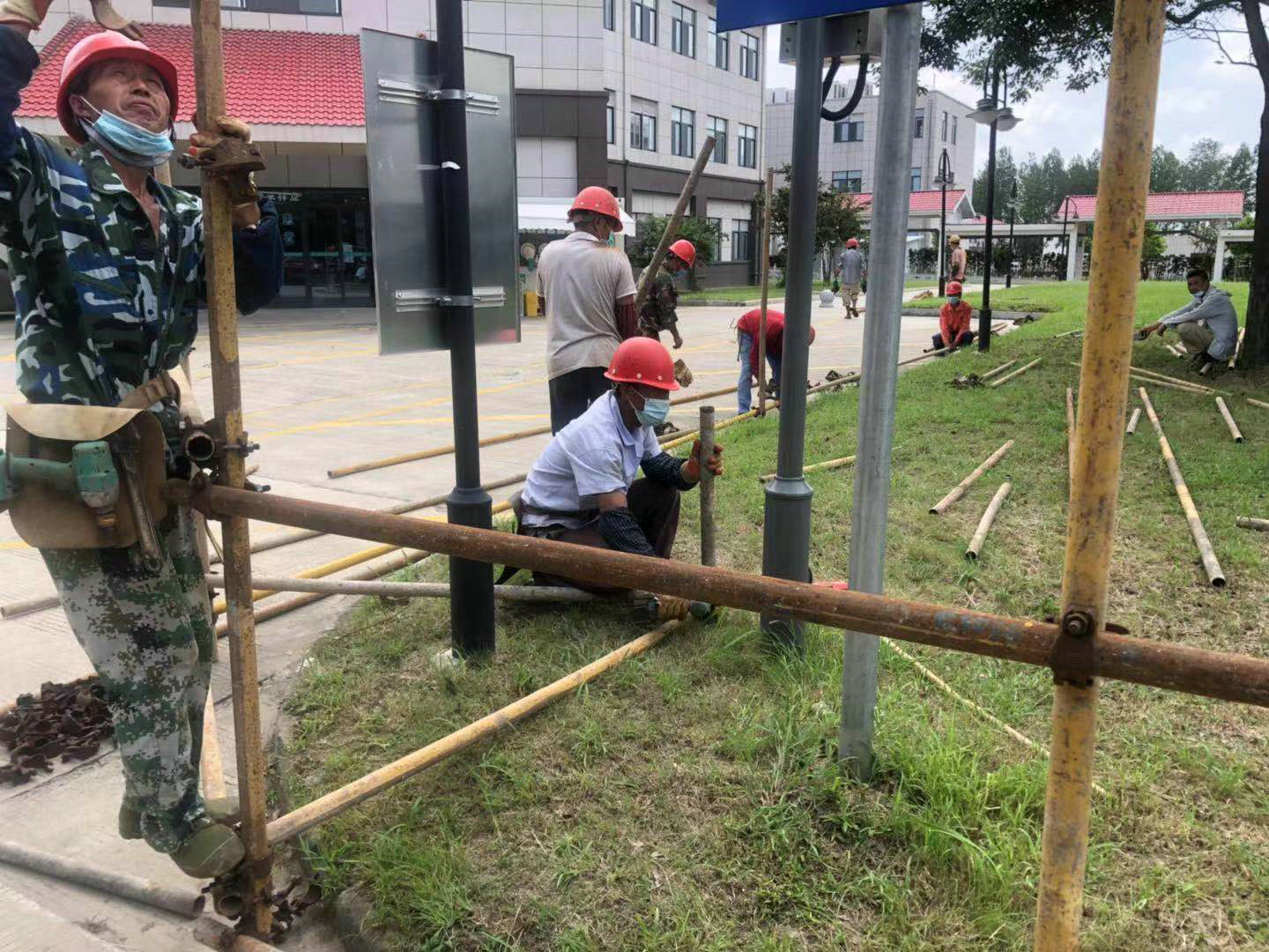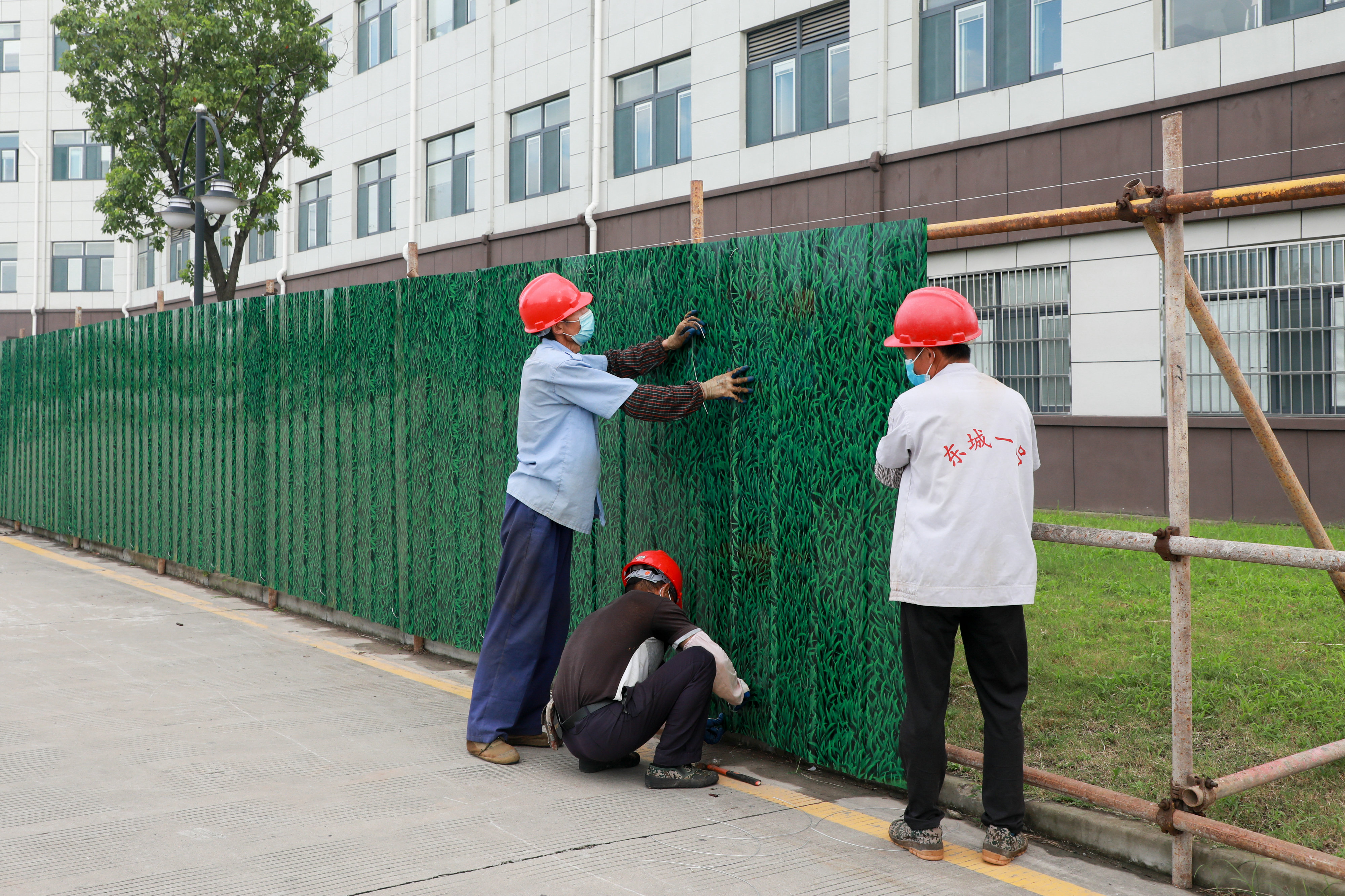8月3日早7點(diǎn),以二公司項(xiàng)目經(jīng)理?xiàng)蠲髡錇槭椎?/span>12名管理人員到達(dá)現(xiàn)場(chǎng),積極備戰(zhàn)工程施工。由于疫情期間,材料的調(diào)配、人員的調(diào)動(dòng)受到極大的阻礙。項(xiàng)目部得到集團(tuán)領(lǐng)導(dǎo)及建設(shè)單位的大力支持。當(dāng)天上午9點(diǎn)左右,現(xiàn)場(chǎng)材料及人員已經(jīng)陸續(xù)進(jìn)場(chǎng);中午11時(shí)左右,經(jīng)多方協(xié)調(diào)商議決定現(xiàn)場(chǎng)圍擋布置圖,項(xiàng)目部立即組織人員開始施工。施工過程中,二公司項(xiàng)目部共計(jì)調(diào)動(dòng)93名施工人員,合理安排施工工序,多施工段同時(shí)施工,最大可能提高施工進(jìn)度。主要工作內(nèi)容包括鋼管運(yùn)輸、人工錘擊埋置鋼管、圍擋鋼管連接與架設(shè)、螺栓預(yù)埋、固定彩鋼瓦、蒙擋綠草皮等。根據(jù)項(xiàng)目預(yù)計(jì),全長約400米的室外圍擋的搭設(shè)、固定及彩鋼瓦、草皮的蒙擋,在當(dāng)晚12點(diǎn)前全部完成,總施工時(shí)間不超過12小時(shí)。