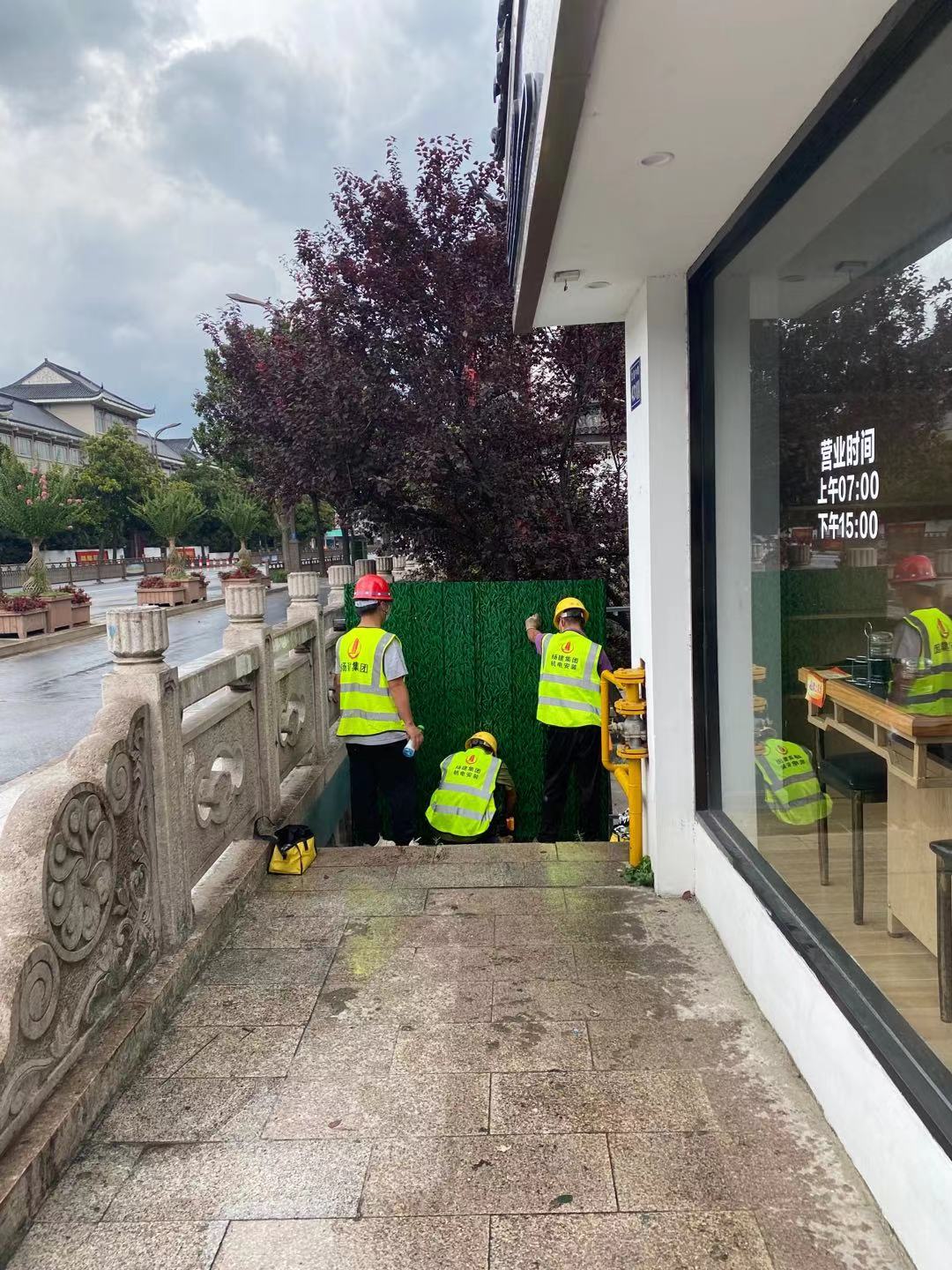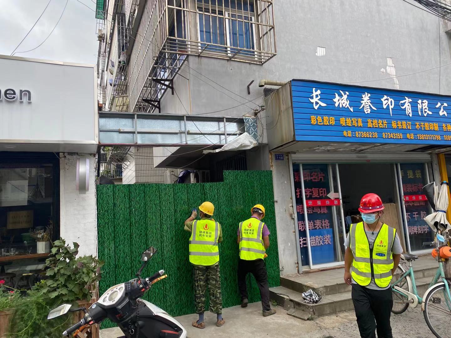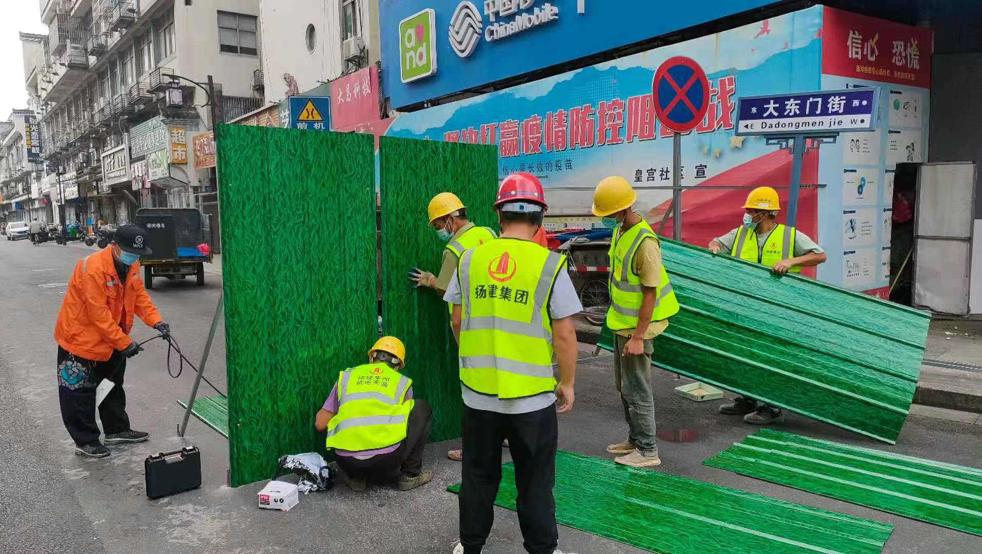 同日,因疫情防控網(wǎng)格化管理要求,需要在東關(guān)街道小區(qū)出入口及部分道路岔口設(shè)置圍擋。在接到東關(guān)街道求援后,我集團(tuán)旗下江蘇運(yùn)揚(yáng)工程建設(shè)有限公司(原“新?lián)P建”)立刻安排九龍八期項(xiàng)目部八名工人,在韓璇卿、王云兩同志帶領(lǐng)下趕往現(xiàn)場(chǎng)投入緊張施工,并于當(dāng)日順利完成了突擊任務(wù)。