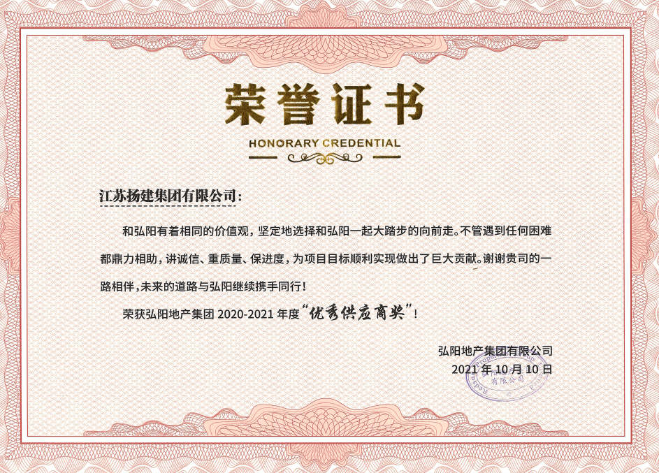 集團(tuán)再獲弘陽(yáng)地產(chǎn)集團(tuán)優(yōu)秀供應(yīng)商稱號(hào)