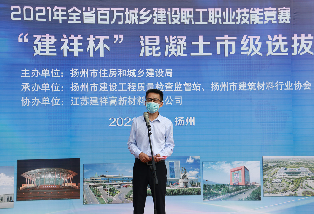 揚建網(wǎng)訊 10月14日上午,2021年全省百萬城鄉(xiāng)建設職工職業(yè)技能競賽揚州市“建祥杯”市級選拔賽在我集團華運公司拉開序幕。開幕儀式由市住建局陳立軍處長主持;集團董事、執(zhí)行總裁、市建筑材料行業(yè)協(xié)會會長沈國仁出席并發(fā)表致辭;市質(zhì)檢站劉榮祥科長出席并宣讀比賽規(guī)則;市住建局耿良副局長出席并作重要講話。本次賽事為市級選拔賽,由江蘇建祥高新材料有限公司冠名并具體操辦,建祥、榮能、金城、強祥、上建等多家全市知名混凝土企業(yè)參加。