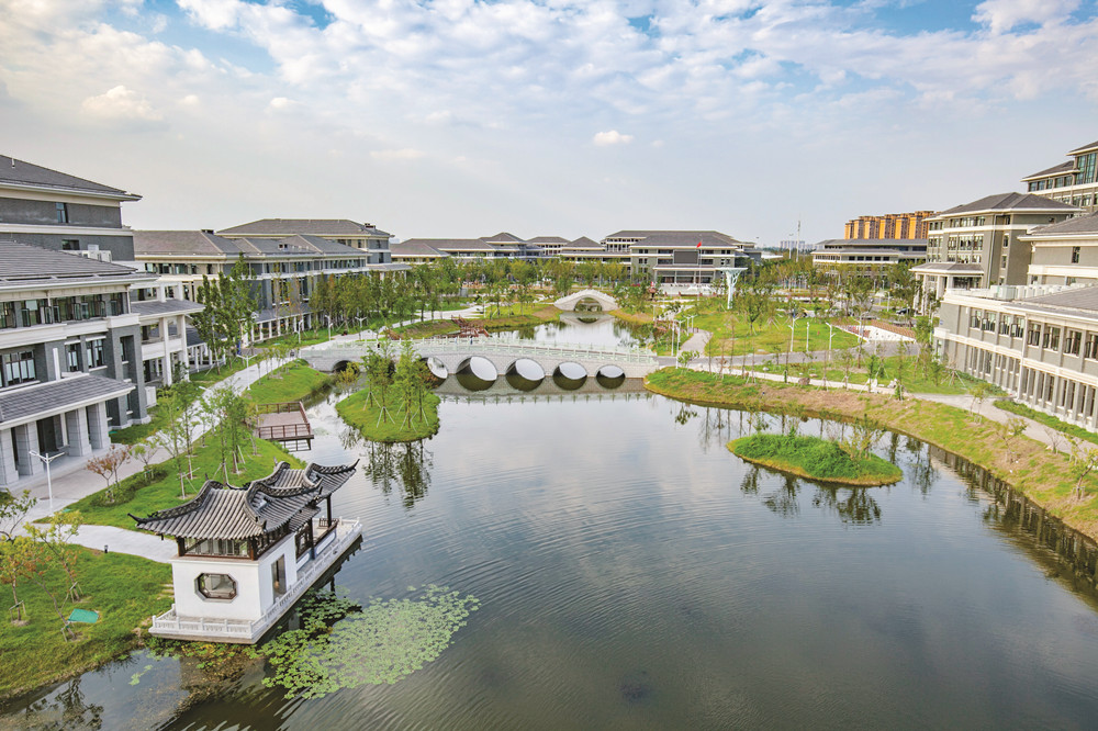 江蘇旅游職業(yè)學(xué)院一期項(xiàng)目由揚(yáng)州臨港教育發(fā)展有限公司投資建設(shè),是集團(tuán)公司總承包的第一個(gè)PPP項(xiàng)目,由項(xiàng)目管理一公司具體實(shí)施,環(huán)保公司、華發(fā)公司、樁基公司參建。總建筑面積20.28萬㎡,框架結(jié)構(gòu),2016年12月15日開工,2018年12月20日備案,工程總造價(jià)9.37億元,工程首創(chuàng)性地提出了開放式校園,以5A級景區(qū)標(biāo)準(zhǔn)建設(shè)。設(shè)計(jì)注重多元化融合,打造理念最新、環(huán)境最美、文化最優(yōu)的旅游大學(xué)。規(guī)劃了一軸(東西中軸),兩片(南片教學(xué)區(qū)與北片生活區(qū)),一帶(濱水休閑帶)的空間格局。創(chuàng)新性采用產(chǎn)教研游融合,教學(xué)功能和研發(fā)功能同步發(fā)展,實(shí)現(xiàn)人與自然、社區(qū)、校園和諧發(fā)展。本工程還獲得中施協(xié)工程建設(shè)項(xiàng)目設(shè)計(jì)水平評價(jià)三等成果、二星級綠色建筑設(shè)計(jì)標(biāo)識證書、江蘇省城鄉(xiāng)建設(shè)系統(tǒng)優(yōu)秀勘察設(shè)計(jì)三等獎(jiǎng),江蘇省優(yōu)質(zhì)工程獎(jiǎng)“揚(yáng)子杯”、中國建筑工程裝飾獎(jiǎng)(裝飾工程)、江蘇省建筑施工標(biāo)準(zhǔn)化星級工地;江蘇省省級工法3項(xiàng)、授權(quán)發(fā)明和實(shí)用新型專利各1項(xiàng)、江蘇省QC質(zhì)量成果獎(jiǎng)2項(xiàng)。