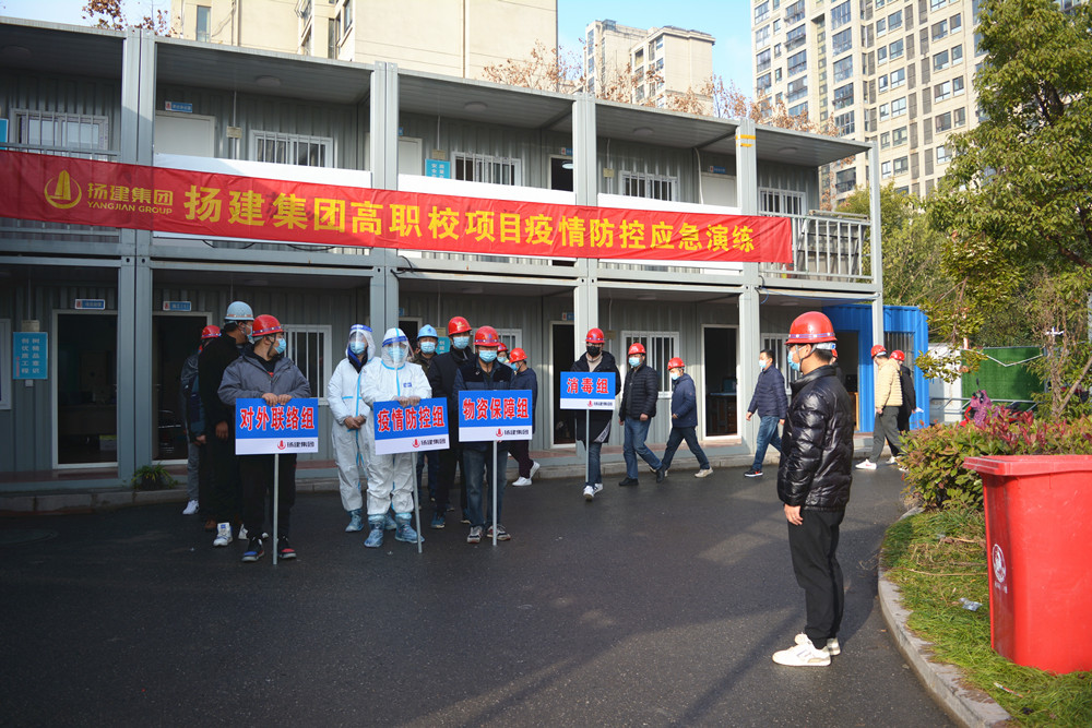 揚建網(wǎng)訊 目前,國內已有建筑工地發(fā)生疫情,疫情形勢依然嚴峻,為提高全體作業(yè)人員疫情防控意識和技能,有效應對新型冠狀病毒肺炎疫情,了解疫情防控措施,12月16日,集團項目管理三公司高職校項目部聯(lián)合建設(代建)單位、監(jiān)理單位、各分包施工單位一起開展了疫情防控應急救援演練,科創(chuàng)集團民興公司副總經(jīng)理陳宇、三公司常務副經(jīng)理蔣畢忠等參加了觀摩指導。