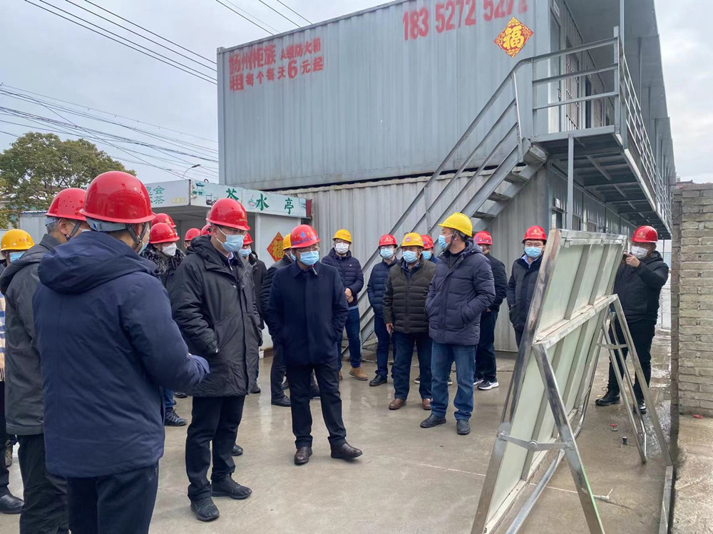 揚(yáng)建網(wǎng)訊 2月8日上午,揚(yáng)州市市委常委、副市長(zhǎng)趙慶紅帶領(lǐng)市住建局、區(qū)建設(shè)局等職能部門一行對(duì)一公司歐美工業(yè)園C地塊EPC工程總承包工地進(jìn)行了檢查指導(dǎo),集團(tuán)公司副總經(jīng)理丁傳武、陳寶中陪同參與檢查。