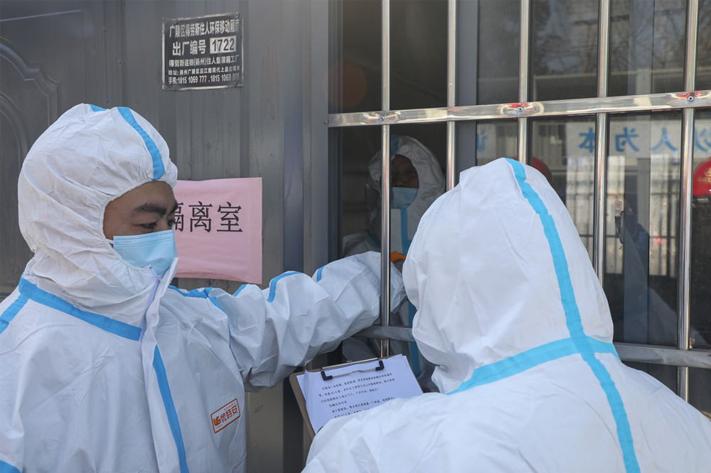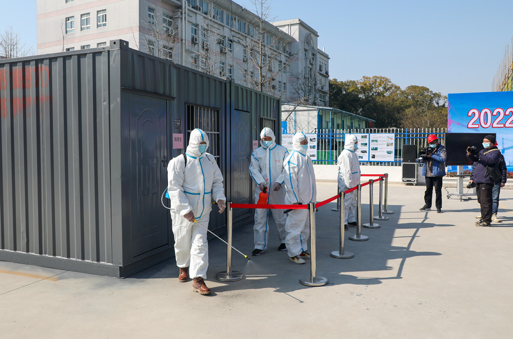 本次疫情防控應急演練圍繞“外防輸入、內(nèi)防反彈”的工作任務,預設工地現(xiàn)場分別發(fā)現(xiàn)一名人員行程碼異常和一名人員發(fā)燒。項目部立即啟動應急預案,按照“快速反應、快速到位、快速處置”的原則安排可疑人員在項目隔離室進行隔離,并對其近期行動軌跡進行登記調查;項目負責人第一時間將情況上報街道社區(qū)、建設單位、集團公司和主管部門,隨后對施工現(xiàn)場出入口進行封閉,轉移可疑人員,開展全面消殺,同時安排專人向職工解疑釋惑,保持職工思想穩(wěn)定。