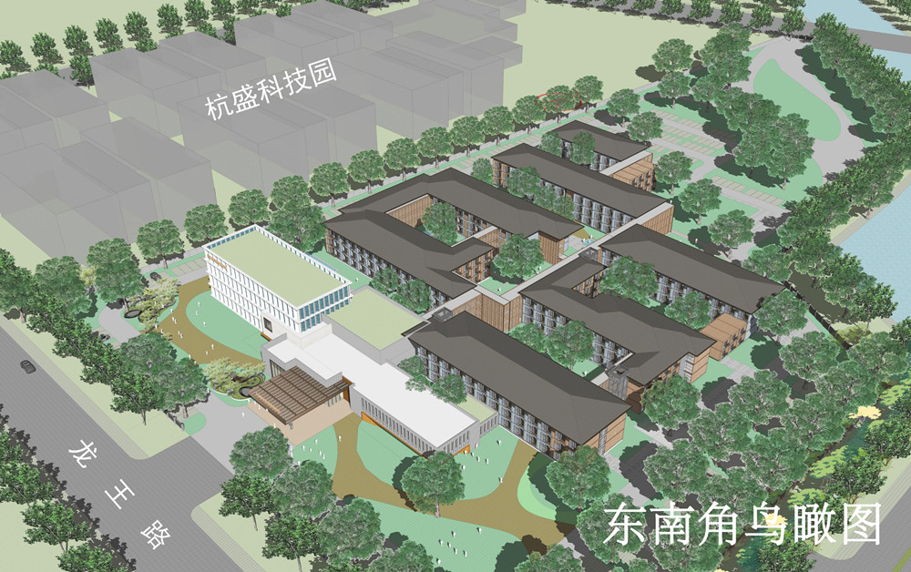 該項目位于328國道與金灣路交叉口西南角,地勢平坦;北側(cè)現(xiàn)有排澇河流,西側(cè)與杭盛工業(yè)園相鄰。項目占地約51畝,后期預備留用地約21畝,本期建設規(guī)模約3萬平方米,共建有500間客房和相關配套設施,防疫按照三區(qū)三通道的要求予以設計,主體建筑采用箱式結構局部鋼結構建造。該項目采用院落式布局,以3-4層的建筑通過連廊圍合形成形態(tài)各異的庭院空間,實現(xiàn)人與建筑、自然和諧共生,未來將作為杭集工業(yè)園區(qū)的配套公寓。