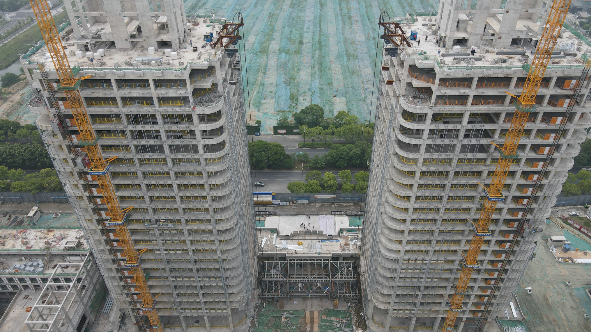 揚(yáng)建網(wǎng)訊 5月13日上午9點整,跨度43.7m、重400噸,人稱蘇中高樓“第一跨”的揚(yáng)州建工科技園A2、A3塔樓間的鋼結(jié)構(gòu)連廊提升施工,按照既定工期目標(biāo)正式啟動。