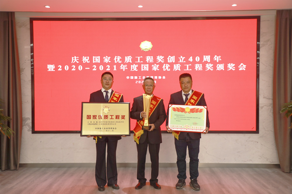 本次是中施企協(xié)第一次對國家優(yōu)質(zhì)工程獎進(jìn)行云上頒獎。國家優(yōu)質(zhì)工程獎每2個年度頒獎1次,2020-2021年度全國共表彰了687項國家優(yōu)質(zhì)工程獎工程,集團(tuán)共有4個項目受到表彰,其中,三個總承建項目“揚(yáng)州中學(xué)教育集團(tuán)樹人學(xué)校高中部”(項目經(jīng)理張煒瑋)、“新建萬福大橋工程”(項目經(jīng)理張斌)、“江蘇旅游職業(yè)學(xué)院一期項目”(項目經(jīng)理李煒),一個參建項目“三亞市婦幼保健院整體搬遷(新址)建設(shè)項目”(項目經(jīng)理李金邦)。此次創(chuàng)造了集團(tuán)兩年度獲得優(yōu)質(zhì)工程獎項目數(shù)最多的記錄。