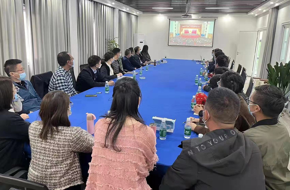 揚建集團(tuán)各塊組織黨員集中收看二十大開幕會