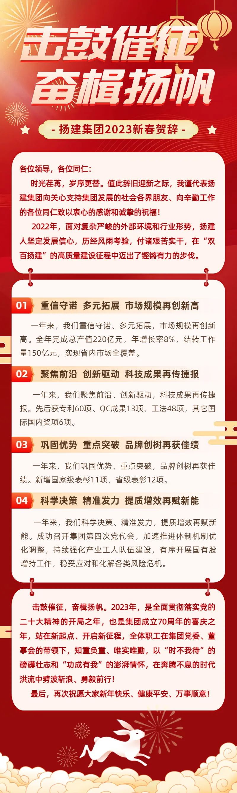 揚建集團2023年新春賀詞:擊鼓催征,奮楫揚帆