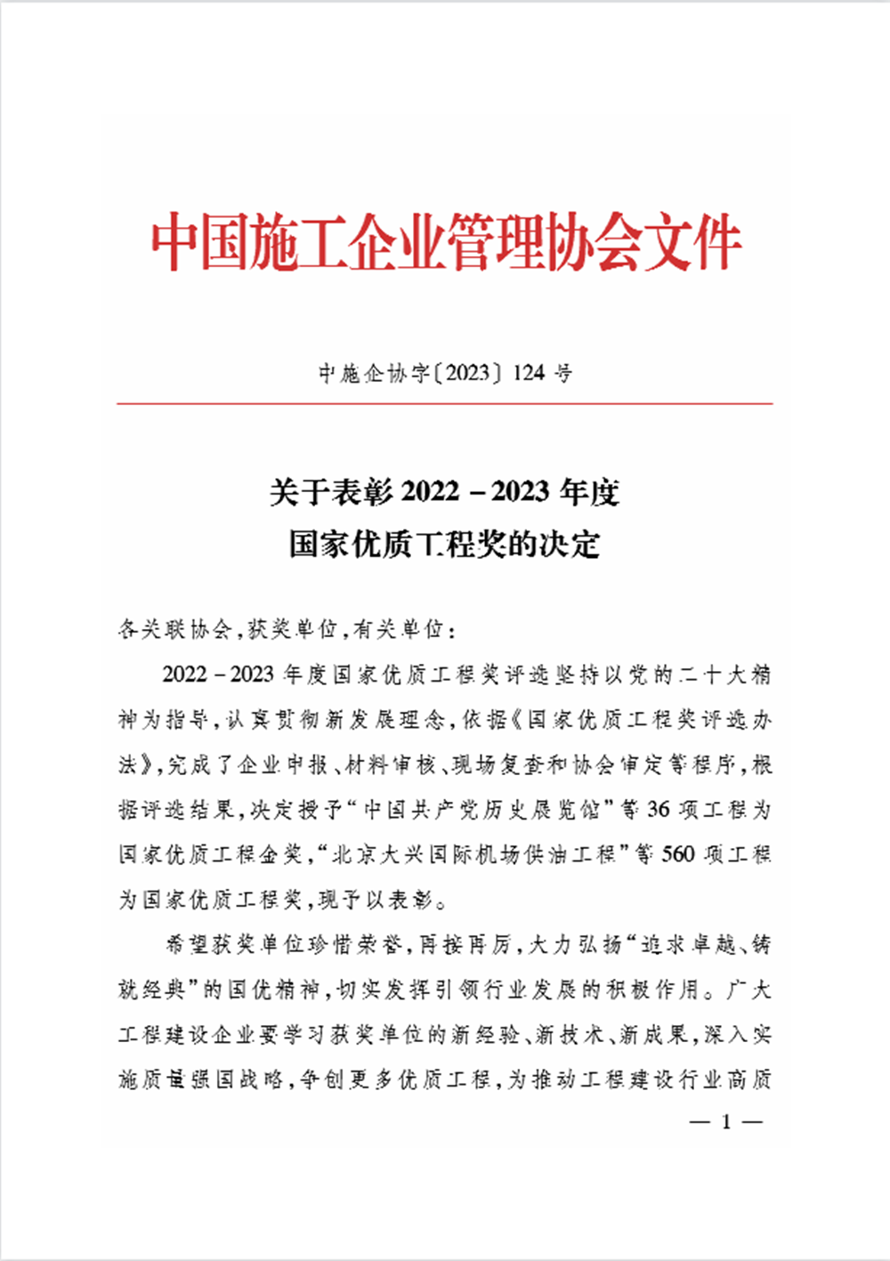 揚建網(wǎng)訊 12月9日,中國施工企業(yè)管理協(xié)會發(fā)布《關(guān)于表彰2022-2023年度國家優(yōu)質(zhì)工程獎的決定》,由集團公司承建,集團樁基、華發(fā)、環(huán)保公司等參建的揚州市湯汪污水處理廠三期工程榜上有名。至此,揚建集團共攬獲國家優(yōu)質(zhì)工程獎14項。