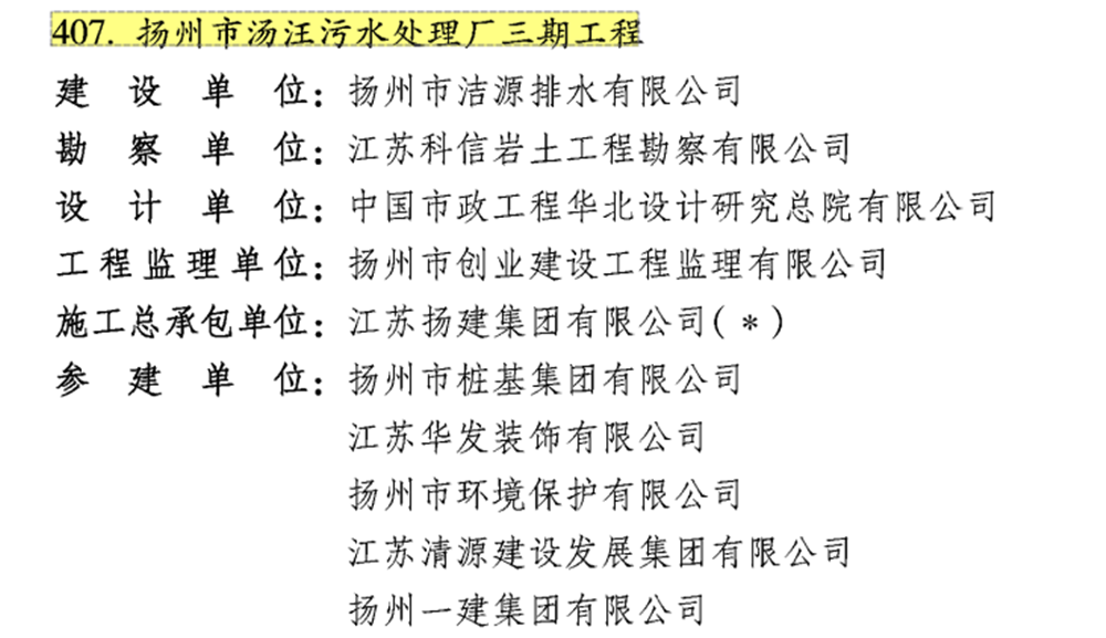 揚建集團湯汪污水處理廠三期工程榮獲國家優(yōu)質(zhì)工程獎