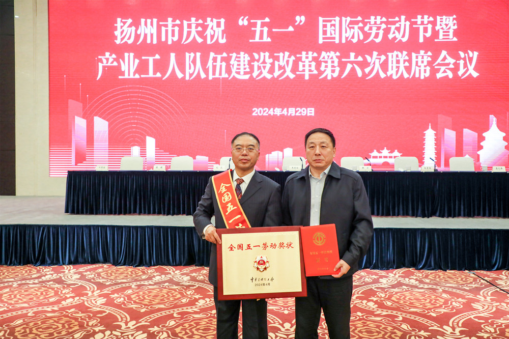 4月29日,揚(yáng)州市召開(kāi)慶?!拔逡弧眹?guó)際勞動(dòng)節(jié)暨產(chǎn)業(yè)工人隊(duì)伍建設(shè)改革第六次聯(lián)席會(huì)議,表彰揚(yáng)州市獲得全國(guó)、省、市五一勞動(dòng)獎(jiǎng)和工人先鋒號(hào)的單位及代表。集團(tuán)公司總經(jīng)理鄒厚存作為全市唯一獲得全國(guó)五一勞動(dòng)獎(jiǎng)狀的單位代表,在會(huì)上作了題為《根植主業(yè)建精品,守正創(chuàng)新謀發(fā)展》的宣講,集團(tuán)公司副總經(jīng)理、工會(huì)主席劉海斌參加會(huì)議。
