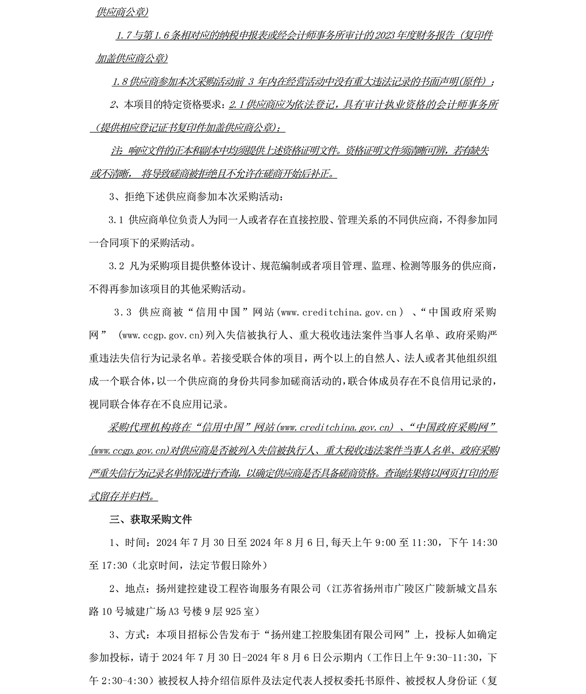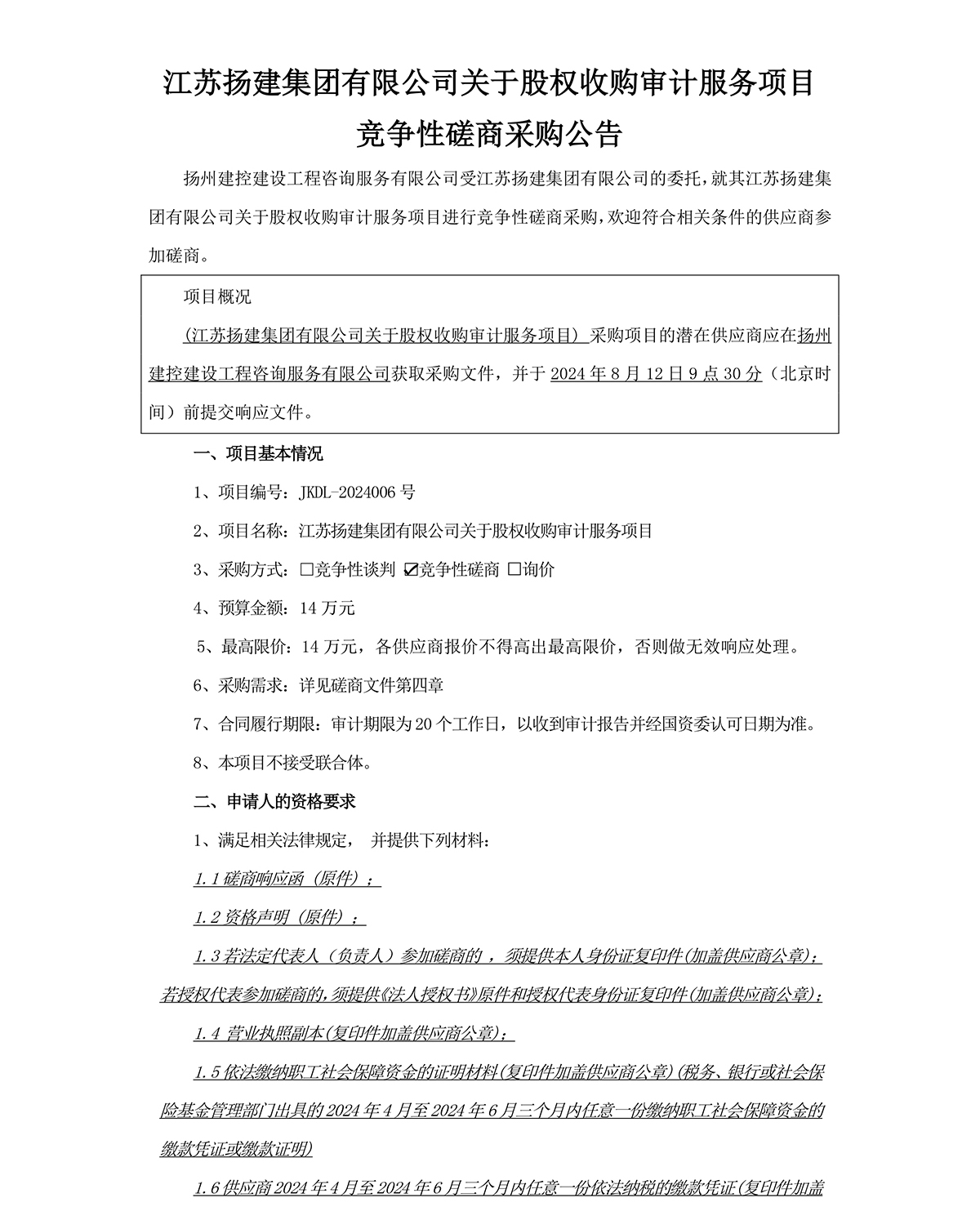 江蘇揚(yáng)建集團(tuán)有限公司關(guān)于股權(quán)收購(gòu)審計(jì)服務(wù)項(xiàng)目競(jìng)爭(zhēng)性磋商采購(gòu)公告