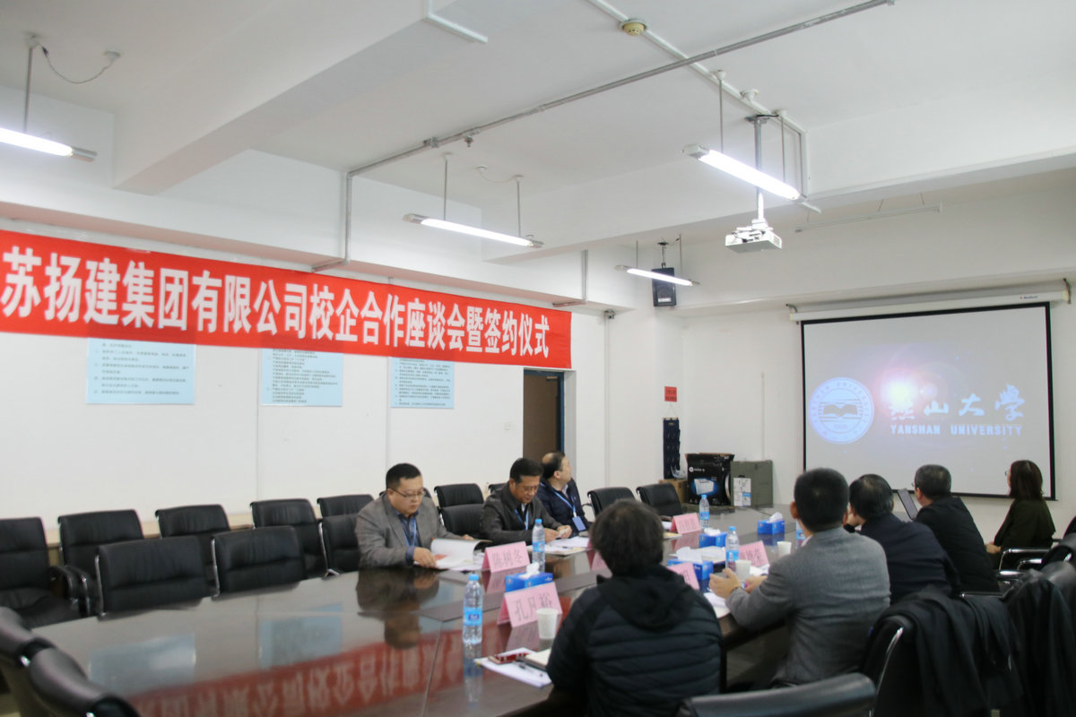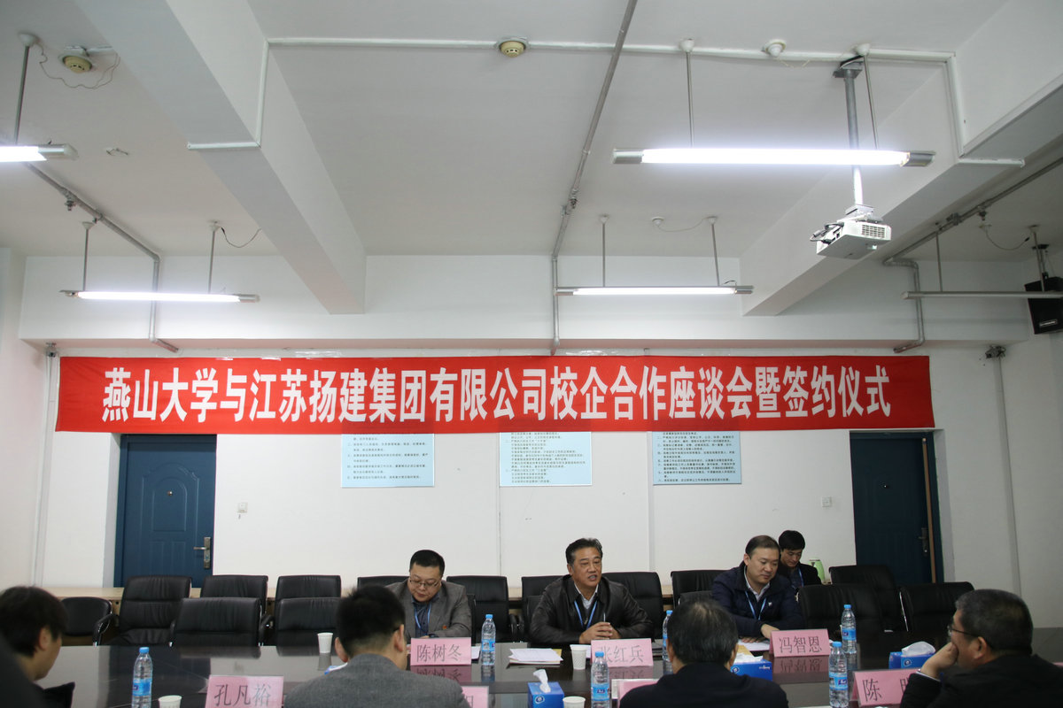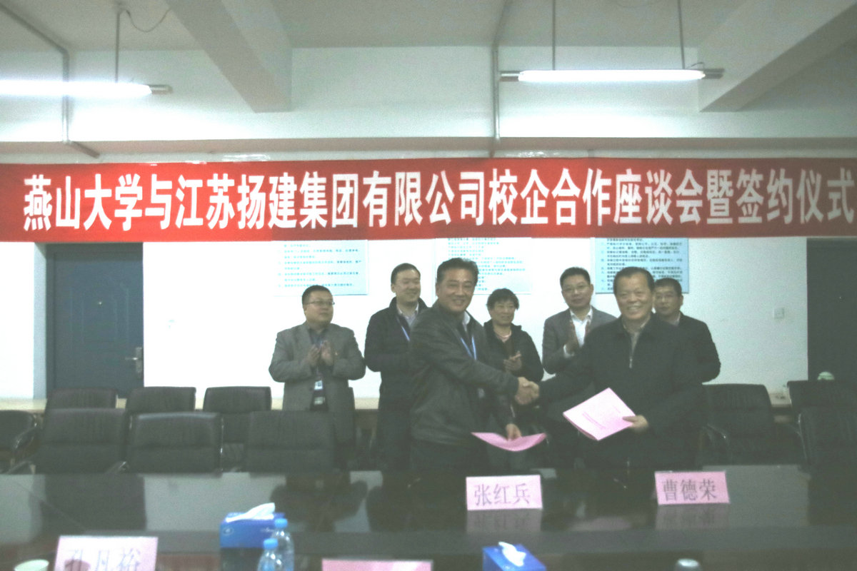 座談過程中,雙方首先觀看了各自的宣傳片,增進(jìn)了相互了解。隨后,燕大張?zhí)庨L介紹該校簡要校史、發(fā)展概況和畢業(yè)生就業(yè)情況;我集團曹董事長介紹了揚建的發(fā)展概況和人才需求情況;許世明董事就近年來揚建集團引進(jìn)、培養(yǎng)和使用的燕山大學(xué)優(yōu)秀畢業(yè)生情況作了介紹。最后,他們代表校企雙方正式簽署了《燕山大學(xué)-江蘇揚建集團有限公司校企合作協(xié)議》。根據(jù)該協(xié)議,我集團將在燕大設(shè)立優(yōu)秀生源基地,燕大將在我集團設(shè)立畢業(yè)生就業(yè)基地;雙方定期聯(lián)系,建立人才供需信息互動機制;不定期互訪,雙方在人才培養(yǎng)與就業(yè)、在職骨干深造、教學(xué)改革、專業(yè)設(shè)置、產(chǎn)學(xué)研合作、互派導(dǎo)師或顧問等方面更好互動、深入合作。