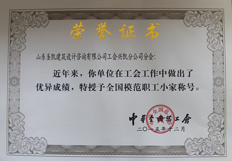 | 全國模范職工小家【興凱證書】 | 中華全國總工會(huì) | 2015-12 |