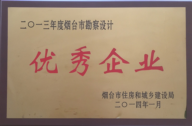 | 煙臺(tái)市勘察設(shè)計(jì)優(yōu)秀企業(yè) | 煙臺(tái)市住房和城鄉(xiāng)建設(shè)局 | 2014-01 |